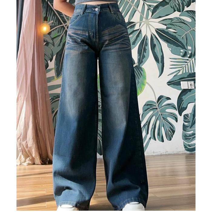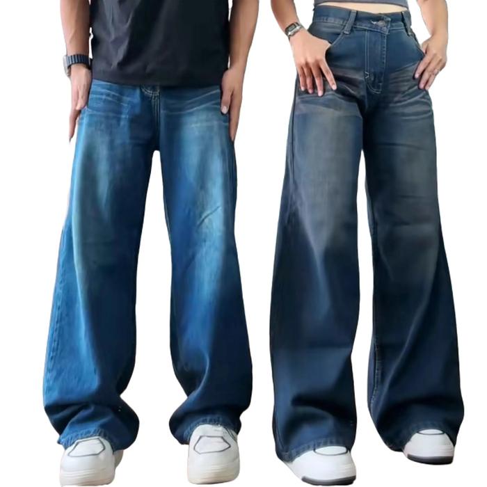 (UNISEX) CELANA JEANS BAGGY COWOK CEWEK HIGHWAIST KULOT JEANS WANITA LOOSE BLUE RETRO CELANA JEANS PANJANG DENIM CEWEK S