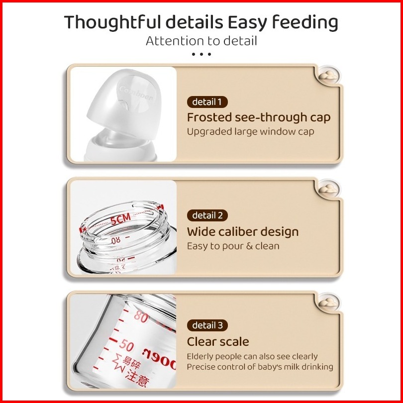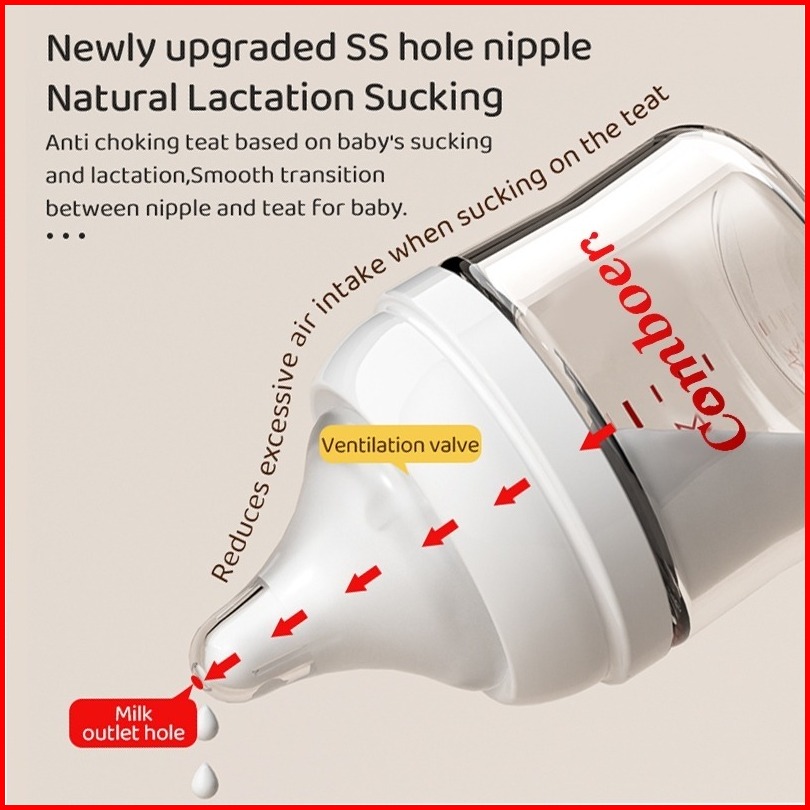 Comber Botol Bayi Kaca Busur Lurus Borosilikat Tinggi 0-2 Tahun Botol Minum Anak 80ml 160ml 240ml