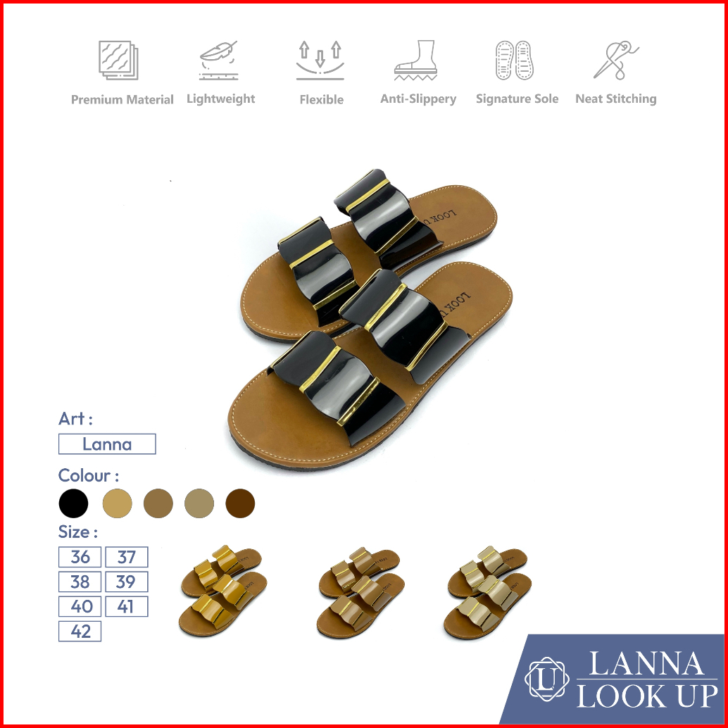 Lanna Lookupshoes Sandal Selop Glossy Wanita Model Ban Dua Korean Style Empuk Kulit Sintetis Sol Karet Anti Licin Sandal