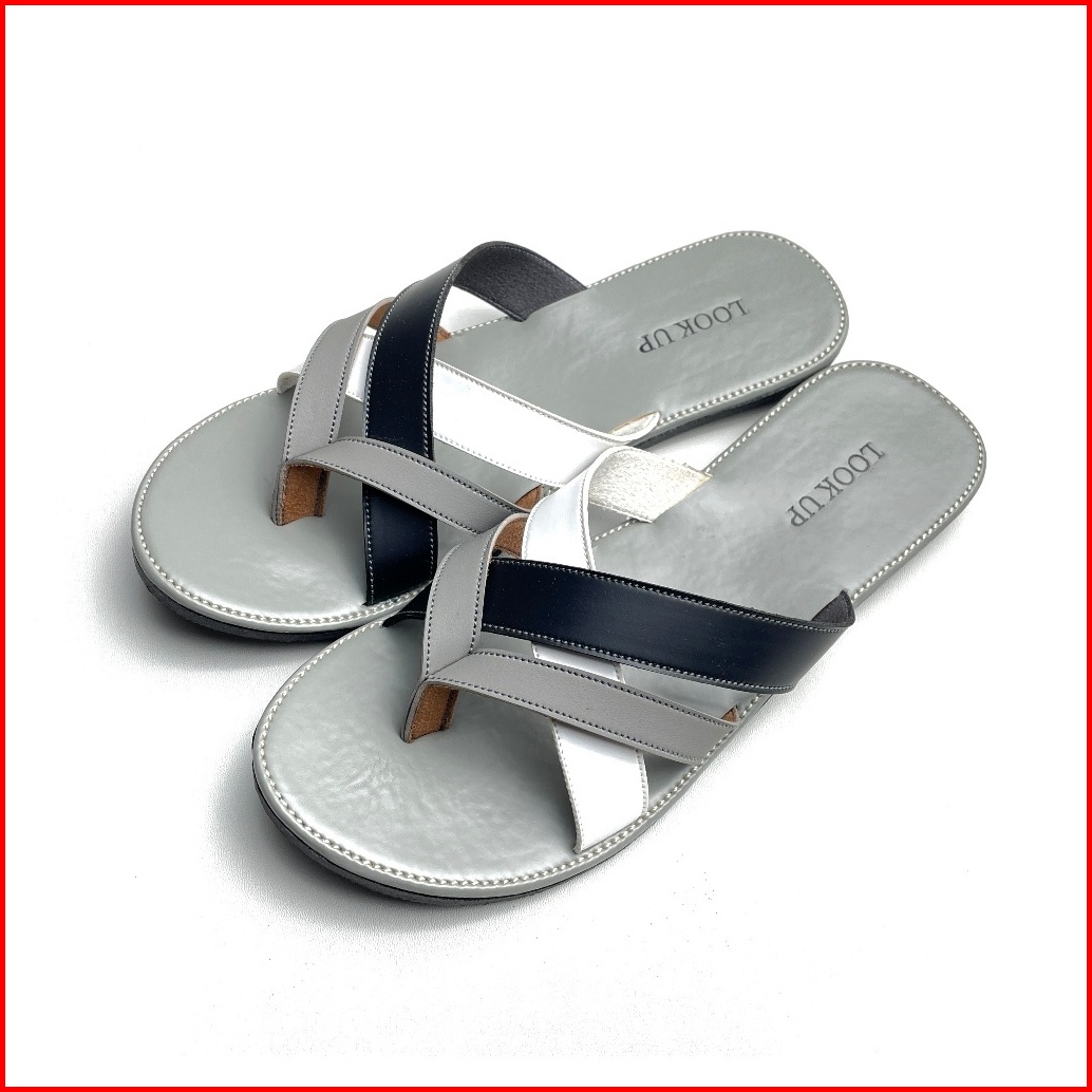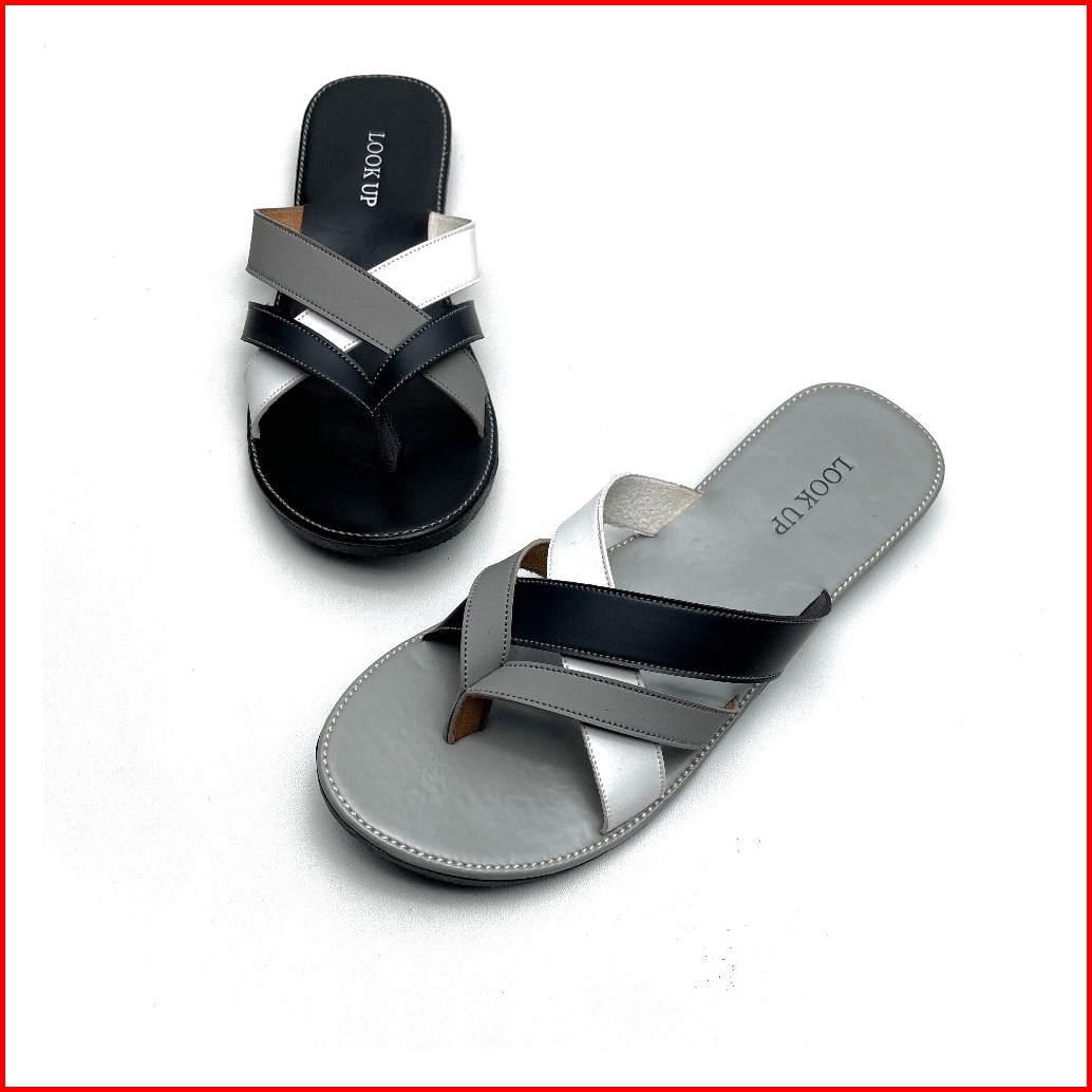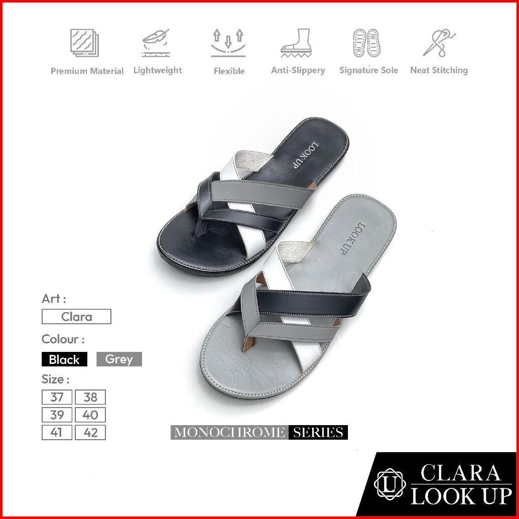 Clara Monochrome Lookupshoes Sandal Wanita Model Jepit Sandal Jepit Anti Licin Sol Karet Teplek Hitam Abu Motif Kombinas