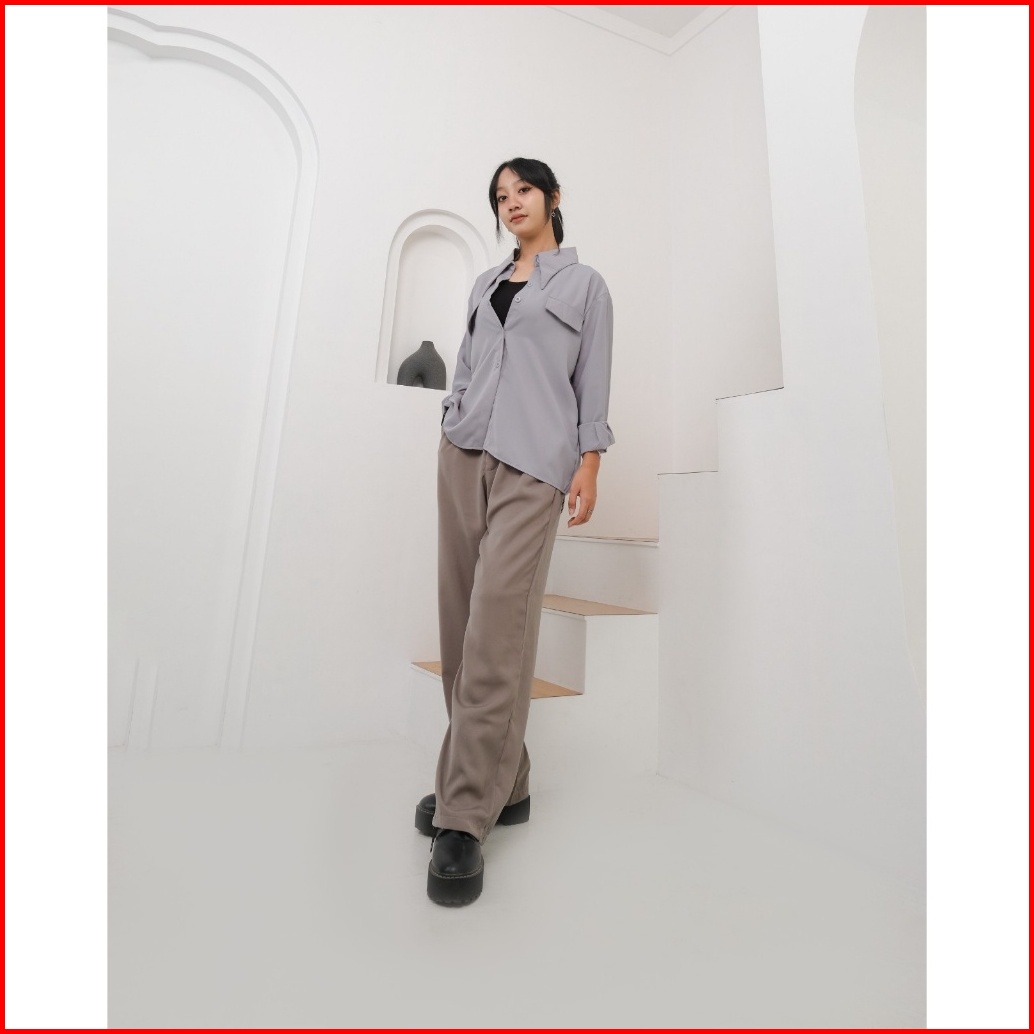 Liza Shirt - Kemeja Basic Polyester Premium - Kemeja Wanita Polos- Atasan Wanita Kekinian Ypd.id