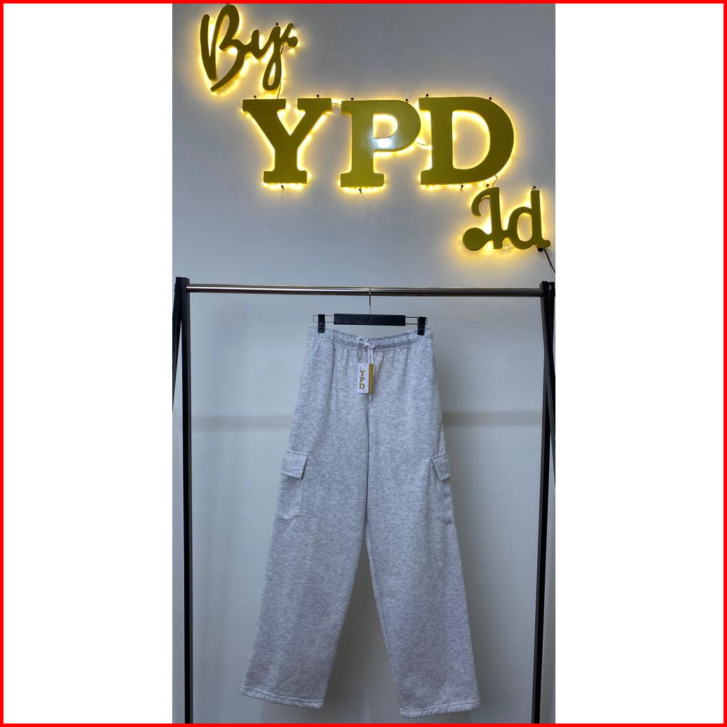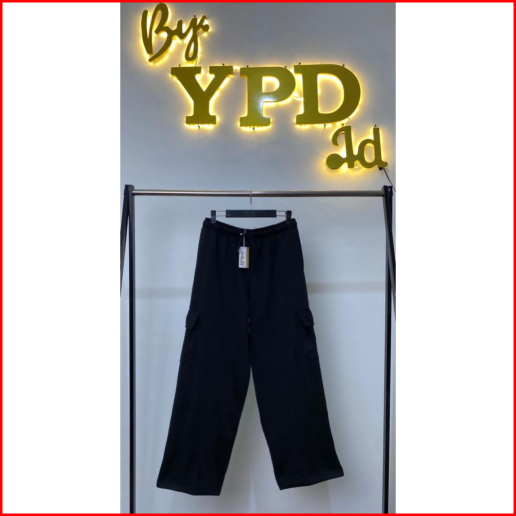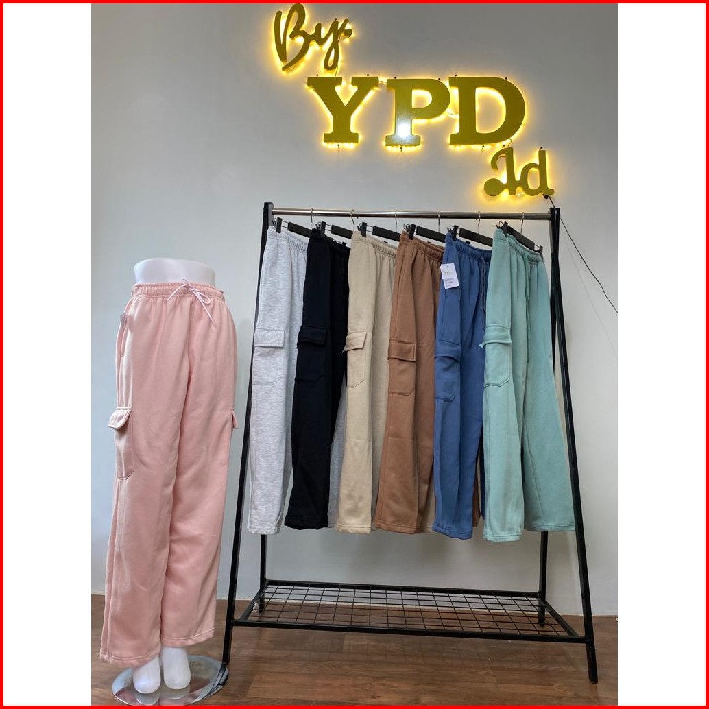 Celana Kargo Wanita Highwaist - Cargo Sweatpants Bahan Fleece Ypd