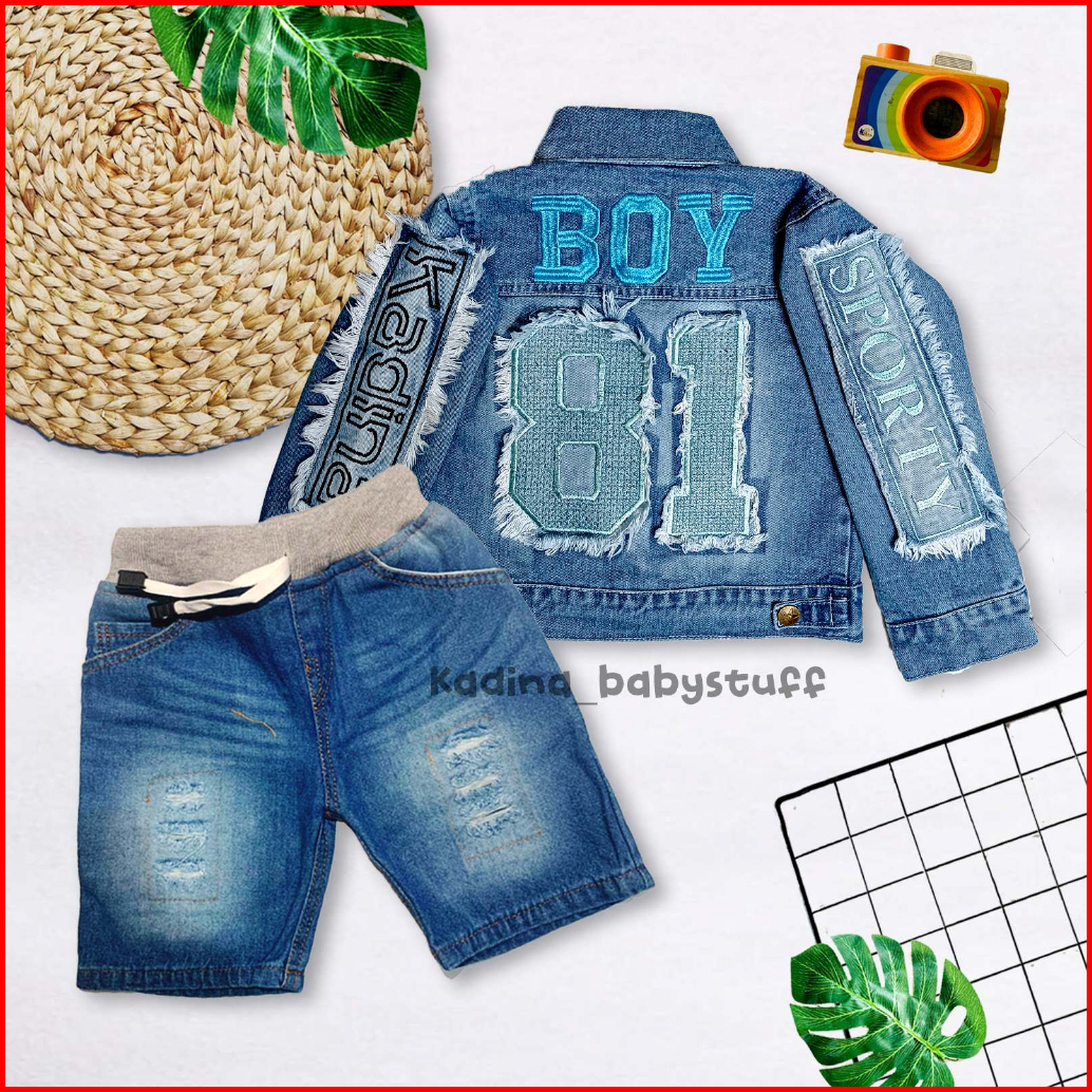 Setelan Jeans Anak Laki-laki Jaket Boy Bordir Celana Sobek Pendek Anak Usia 1-8 Tahun