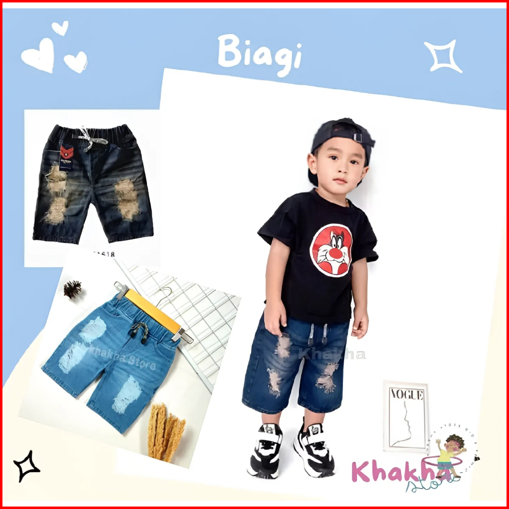 Short Pants Celana Anak Laki-laki Jeans Pendek Model Sobek 2-8 Tahun