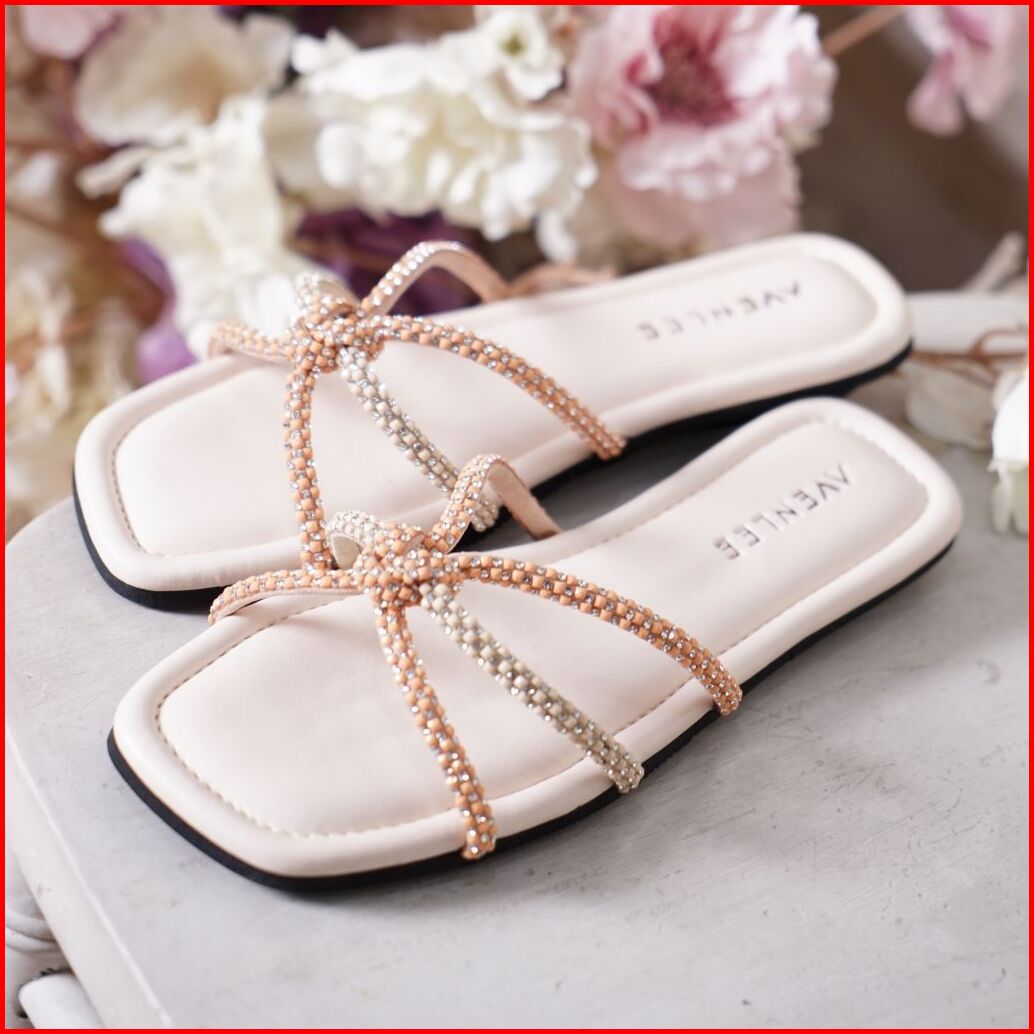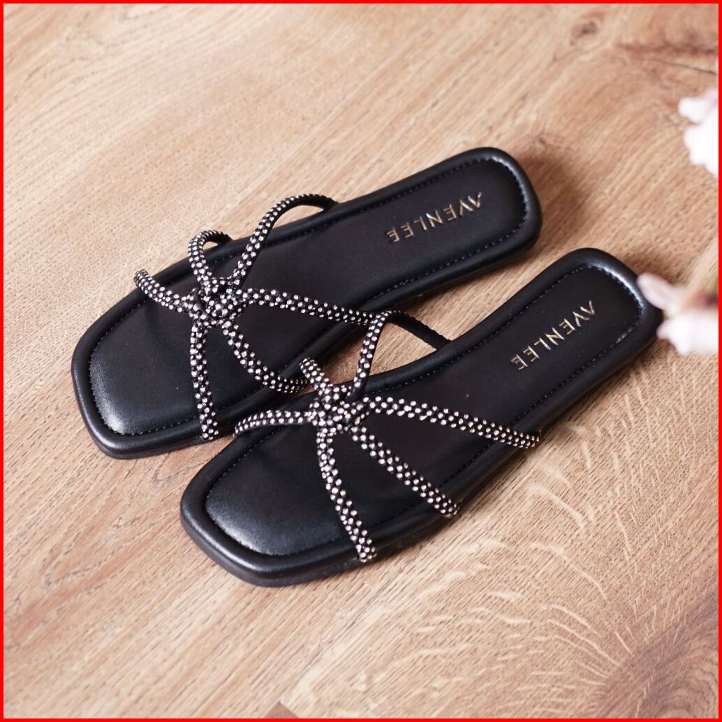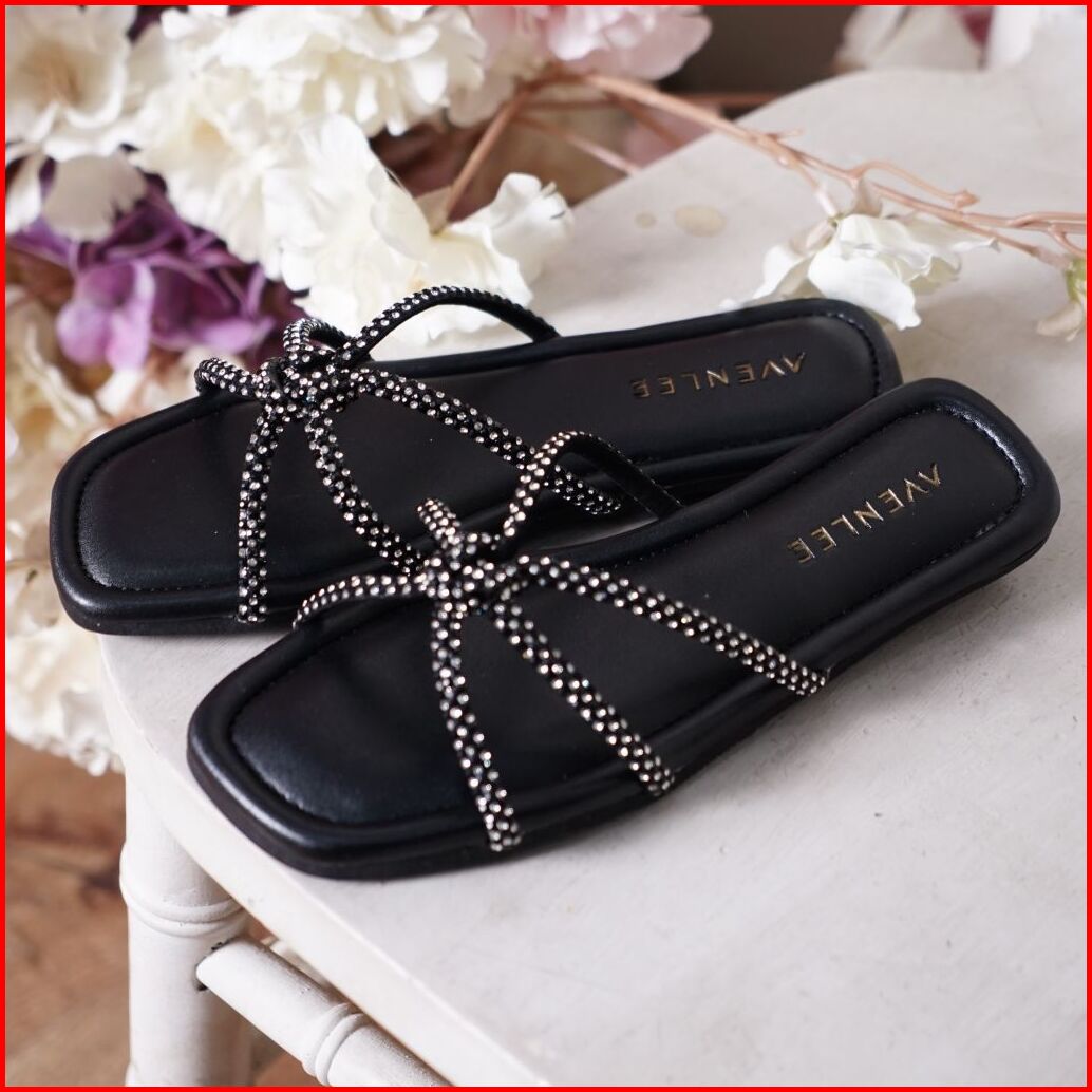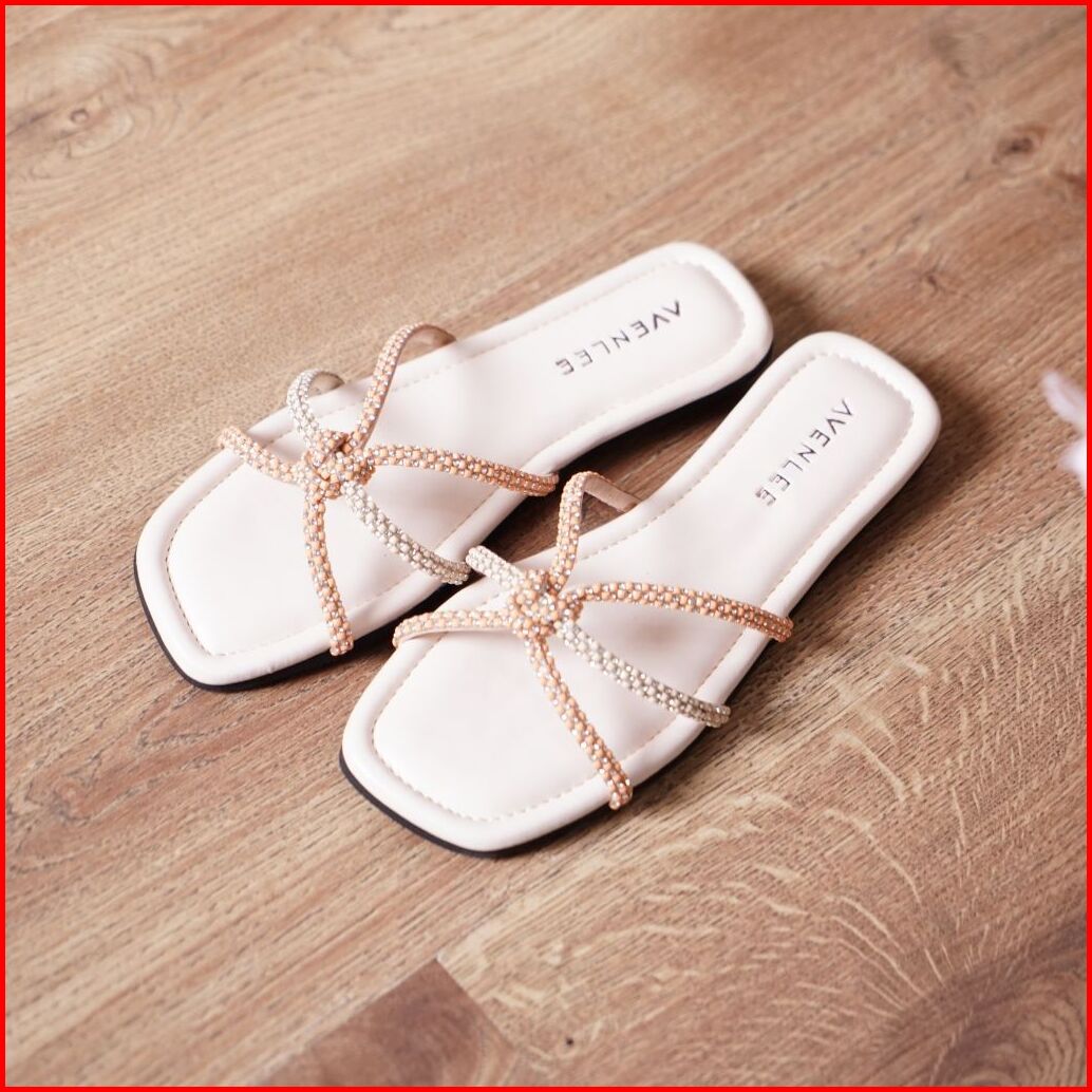 Avenlee Rose - Sandal Wanita Elegan Flat Mewah Dengan Tali Berlian Sintetis Nyaman Untuk Sehari-hari