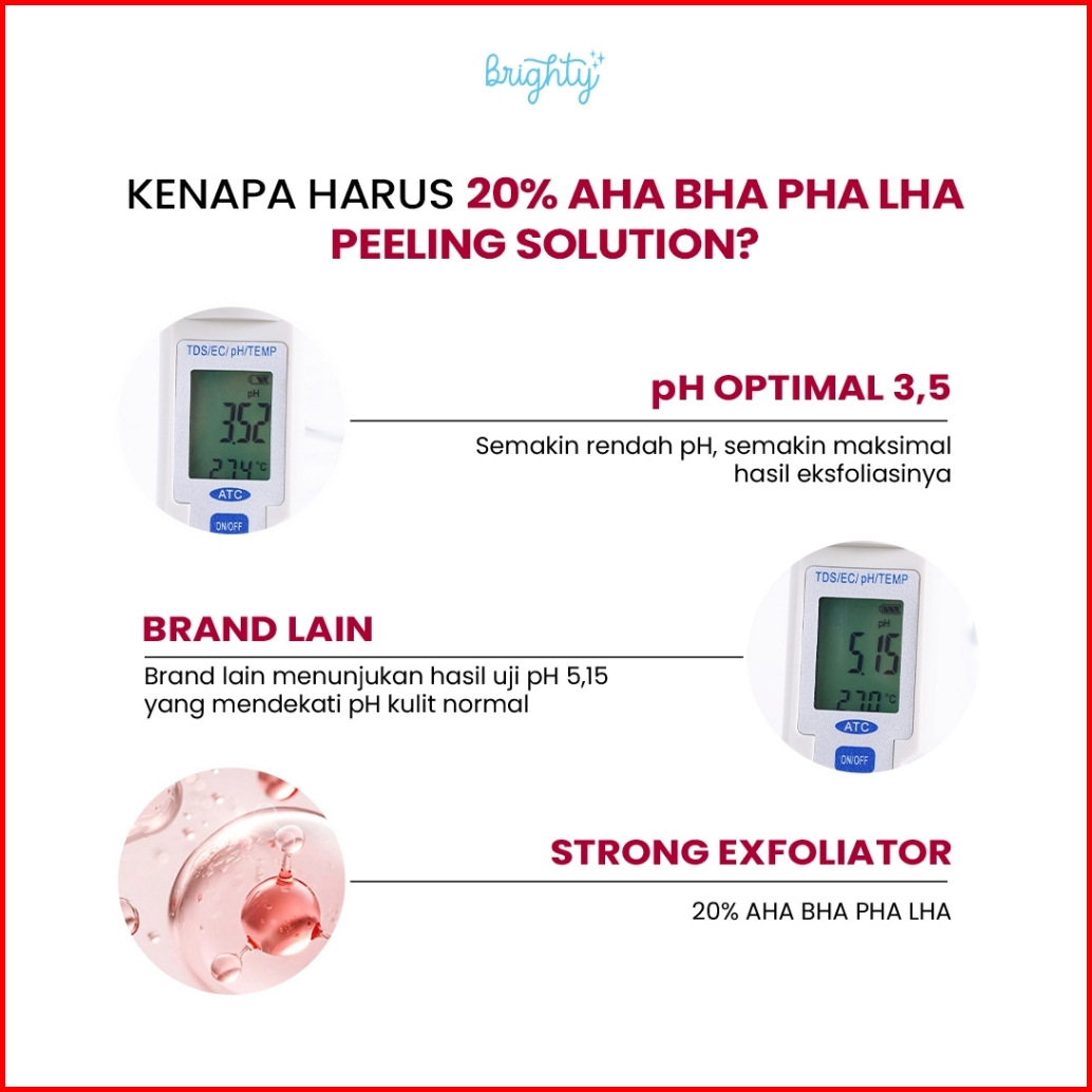 Brighty 20 Aha Bha Pha Lha Peeling Solution Pencerah Kulit Exfoliasi Peeling Serum Pembersih Komedo Serum Komedo Serum P