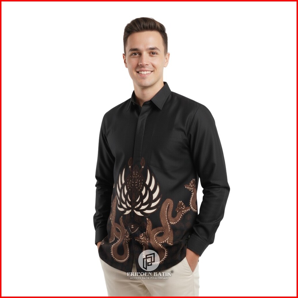 Pripoen Batik Emerald Green Kemeja Batik Pria Lengan Panjang Premium Ready Seragaman