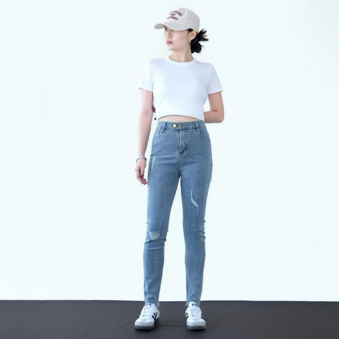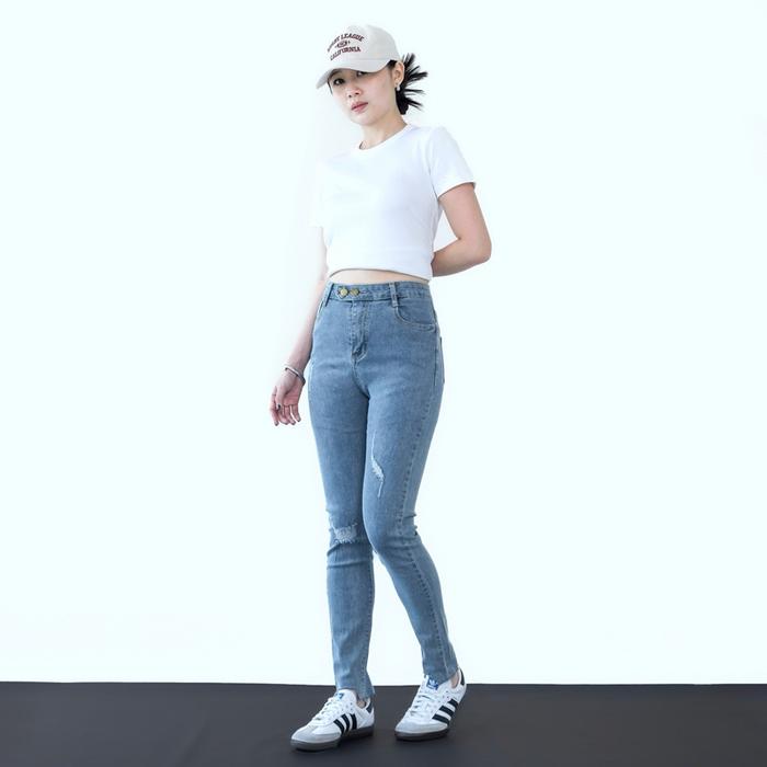 [LUXE.DLABEL] - E2 JEANS | CELANA PANJANG HIGHWAIST WANITA JEANS WANITA POLOS RIPPED JEANS HIGH WAIST JEANS WANITA SKINN
