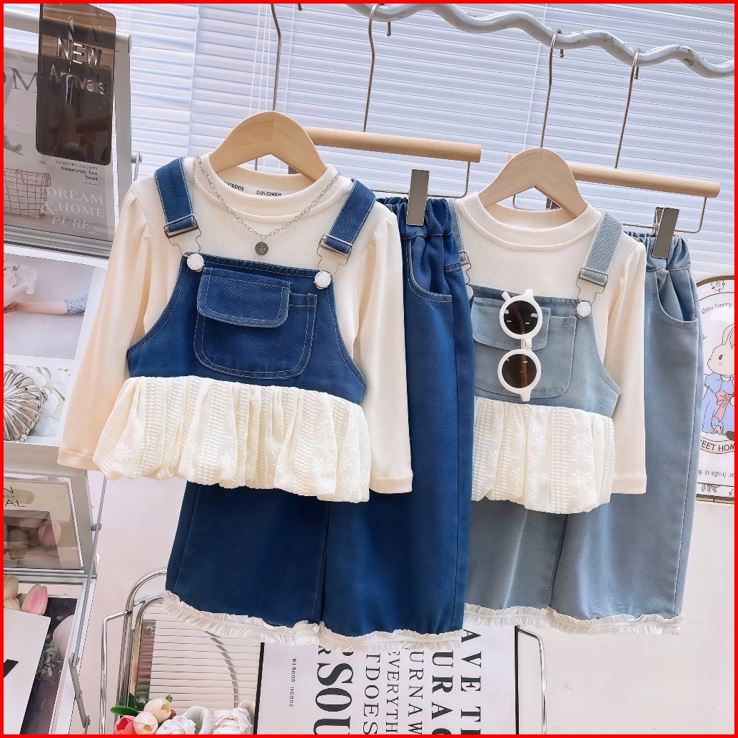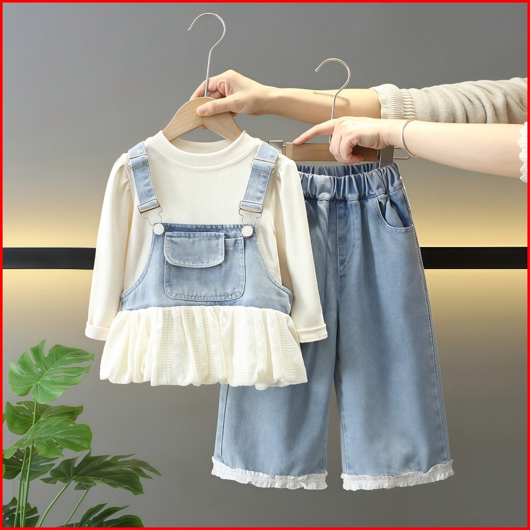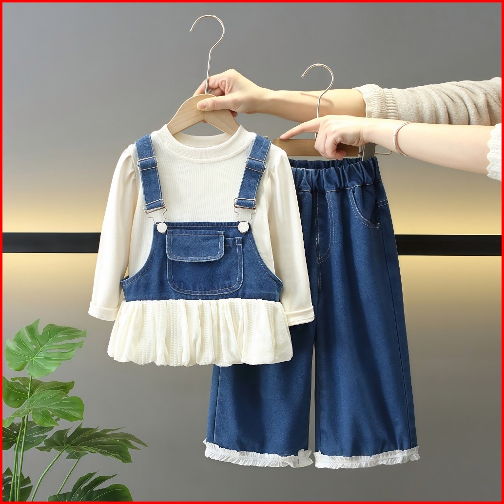Kfcat Setel Denim 3pcs Anak Perempuan Lucu Korean Style Bahan Katun Adem Usia 1-6thn Best Seller