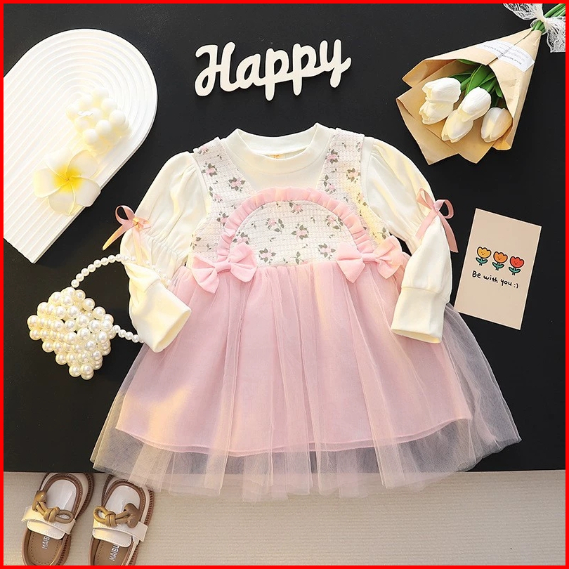Kf Cat Dress Anak Perempuan Lengan Panjang Bahan Katun Tutu Premium Bunga Korea Style Usia 1-4 Tahun