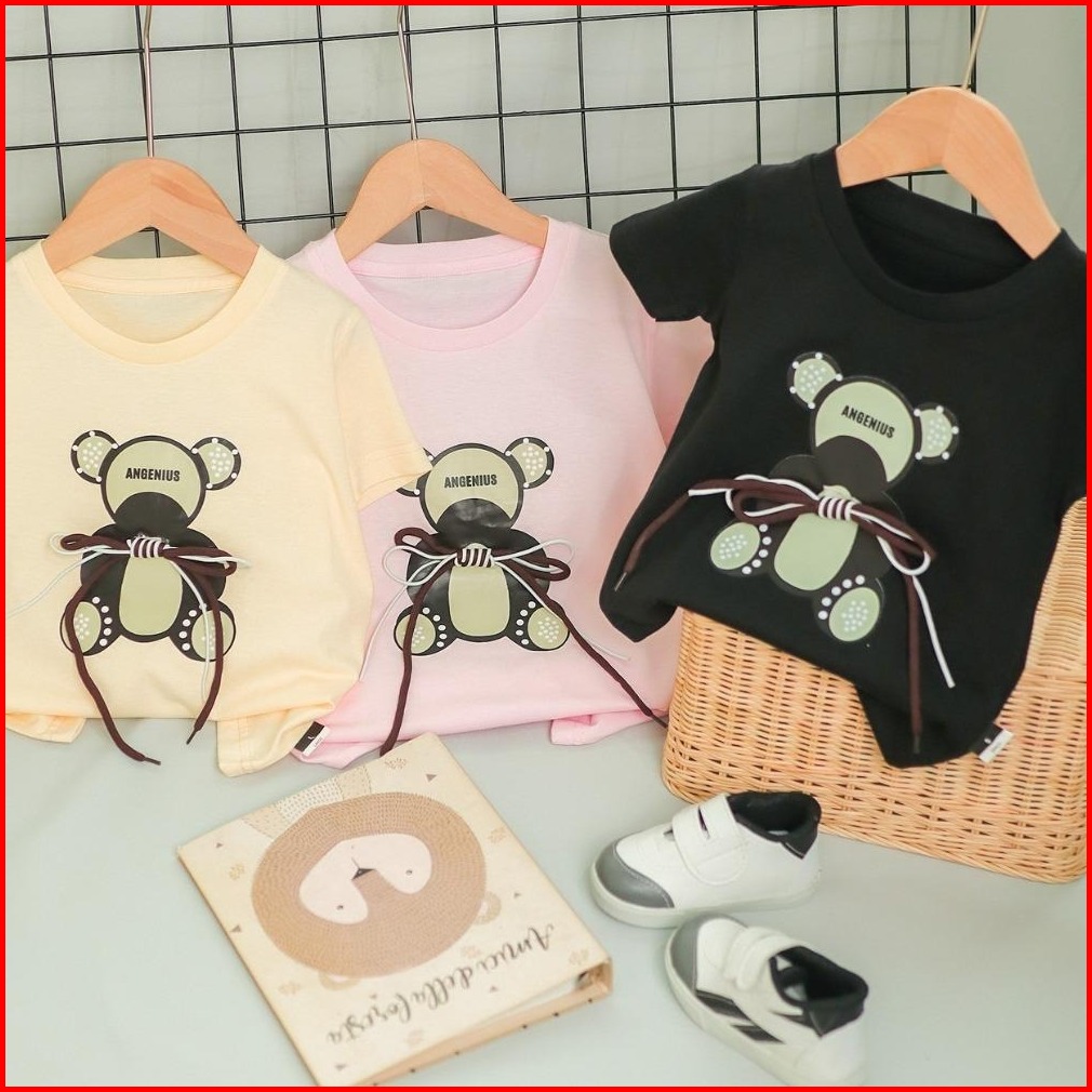 Kf Cat Baju Kaos Anak Perempuan Lengan Pendek Motif Bear Bahan Catton Casual Style Usia 1-4 Tahun
