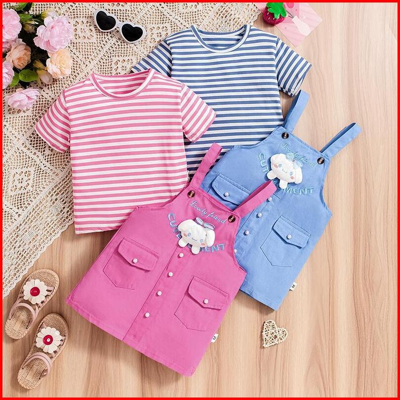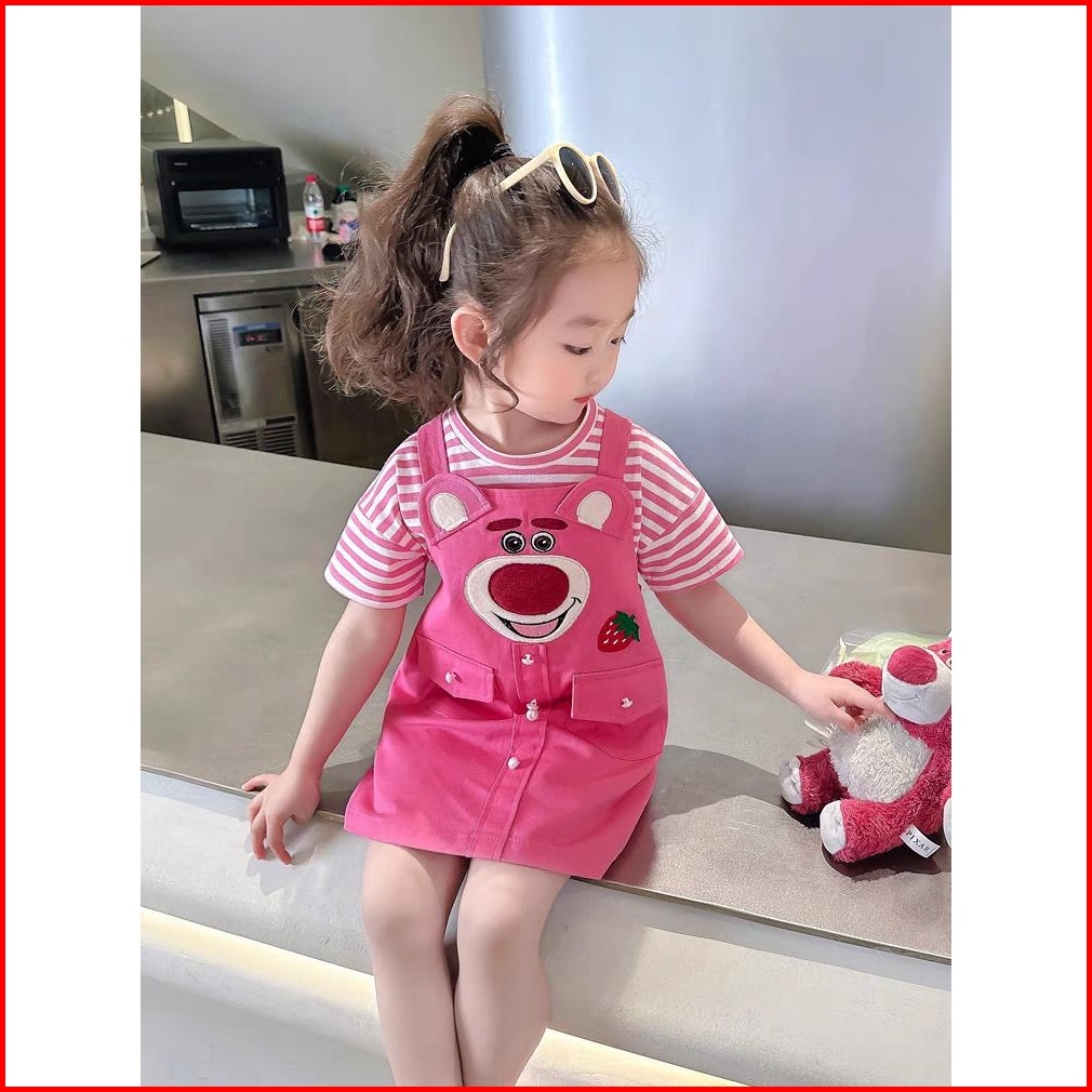 Kf Cat Dress Jumpsuit Lengan Pendek Anak Perempuan Motif Lotso Katun Kancing 2in1 Usia 1-4 Tahun