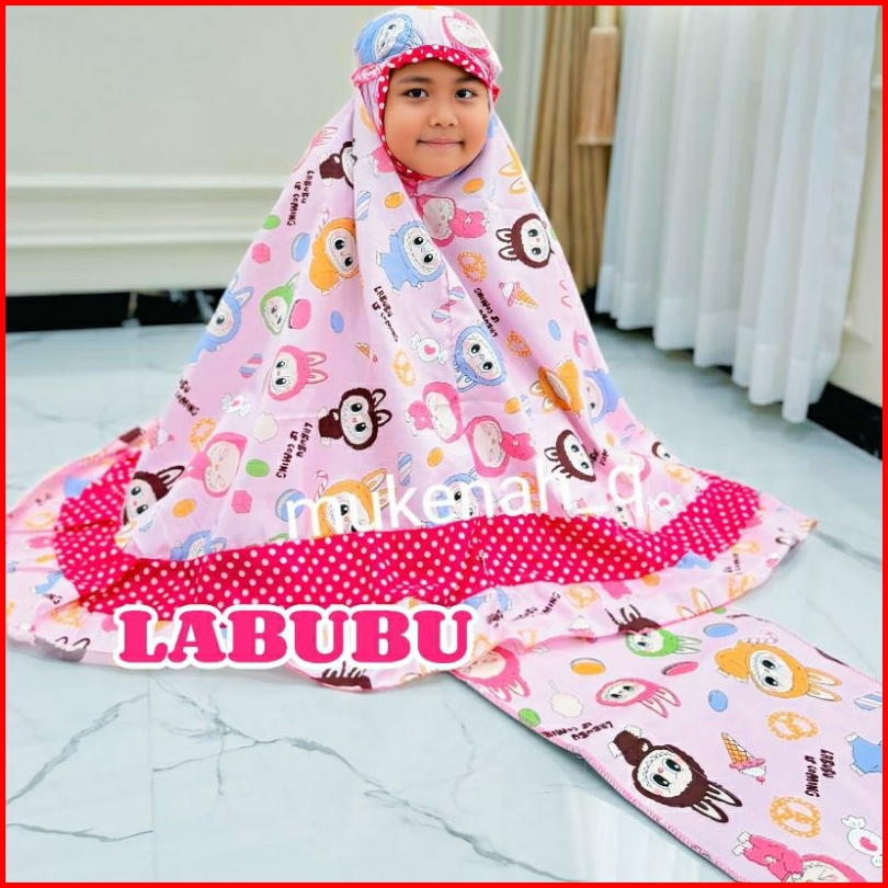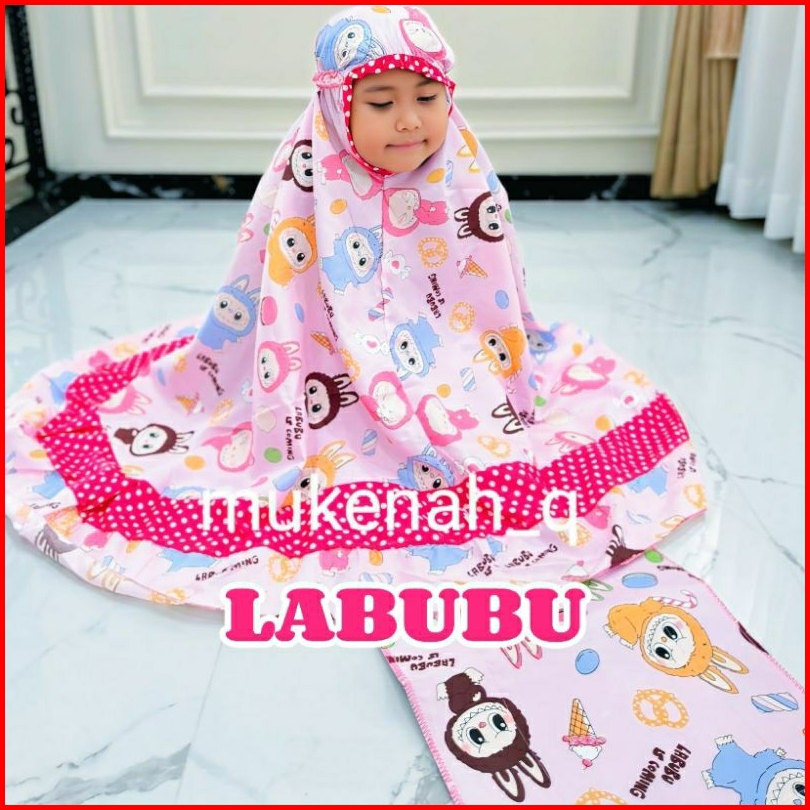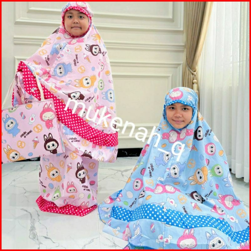 Mukena Anak Labubu Lengkap Sajadah Tas Terbaru 2-14tahun