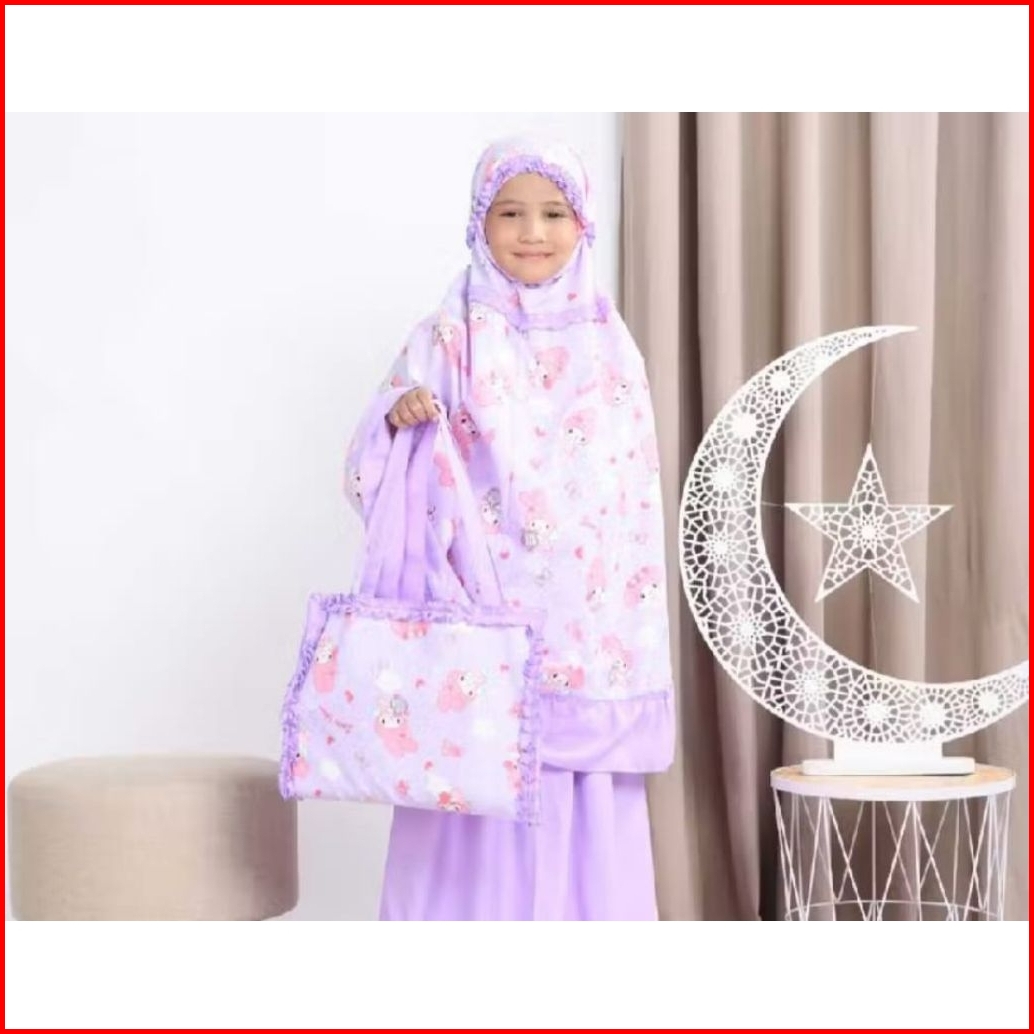 Mukena Anak Motif My Melody Pink Ungu Tas Sajadah Katun Cvc Usia 2-10 Tahun