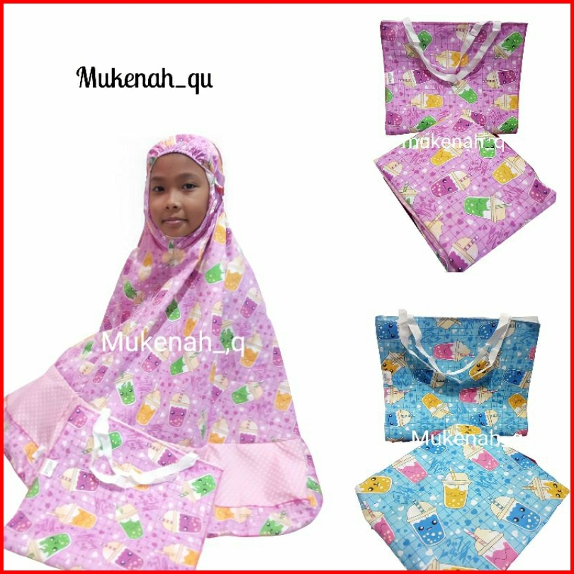 Mukena Anak Mixue Dan Boba Bonus Sajadah Tas Tenteng 2tahun-11 Tahun