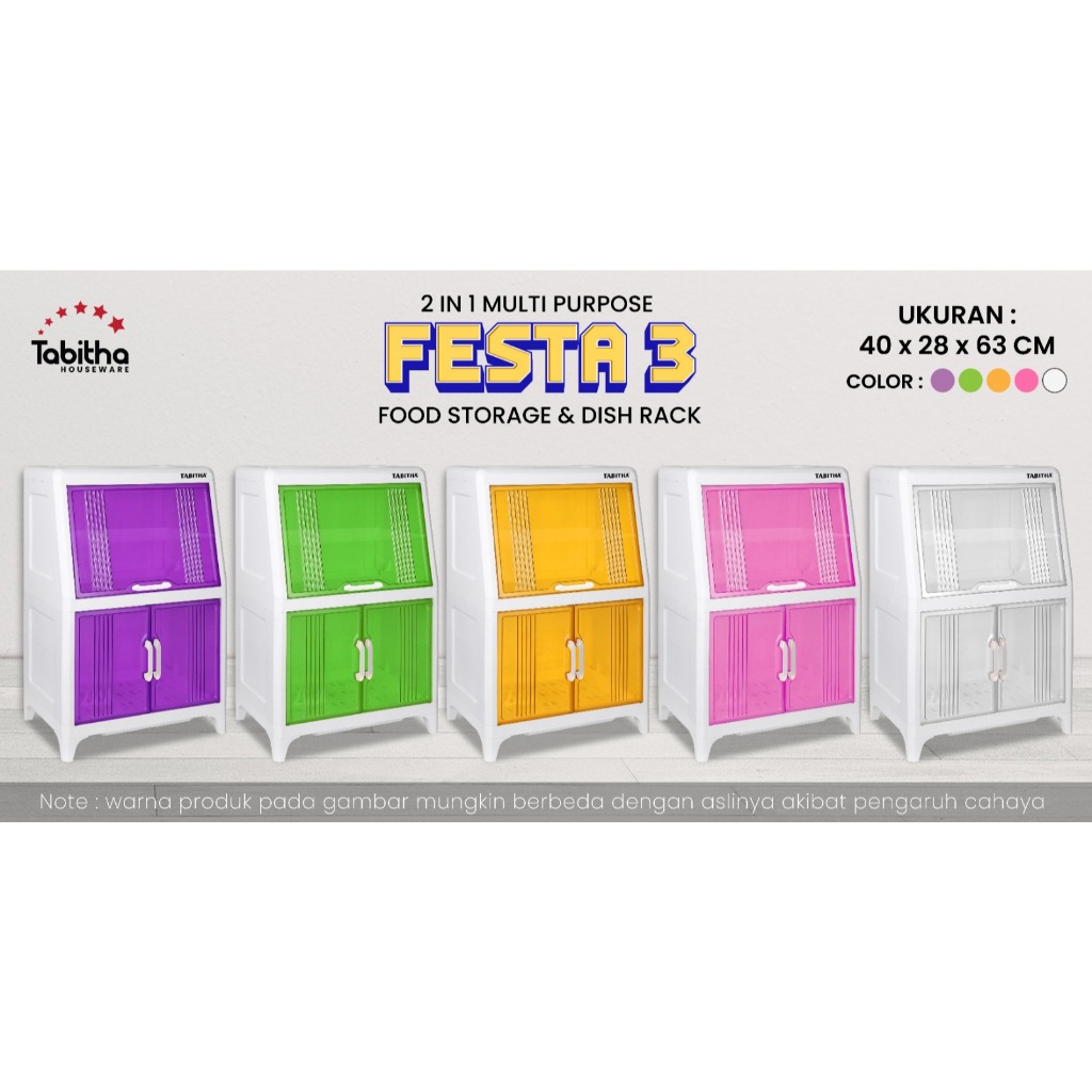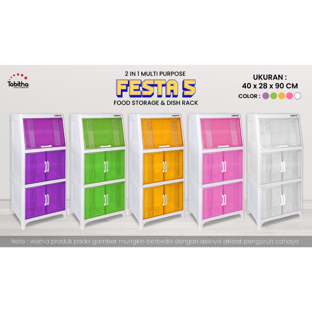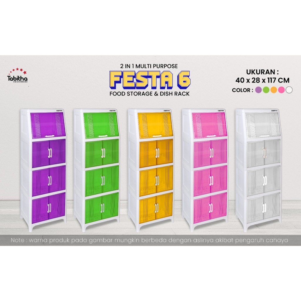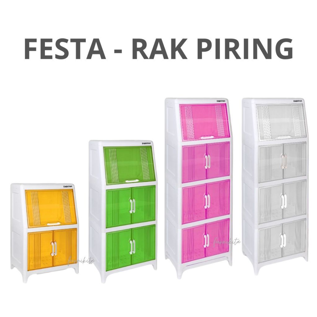 FESTA Rak Piring Plastik Minimalis Modern Lamari Dapur Tertutup Serbaguna 2 3 4 Susun Pintu Wastafel Kaca Keramik Naiba