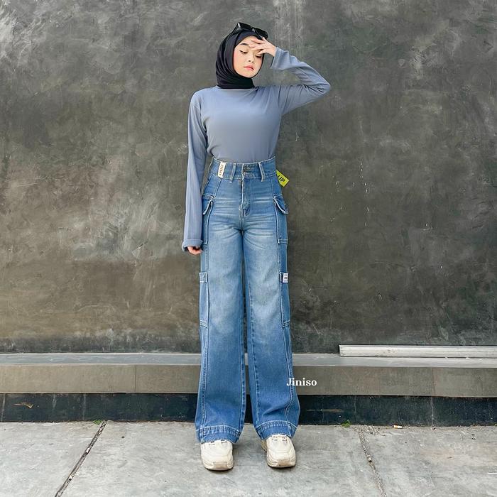 HANDS UP - JINISO CARGO BAGGY CELANA JEANS WANITA HIGHWAIST - 412 - 422, 27