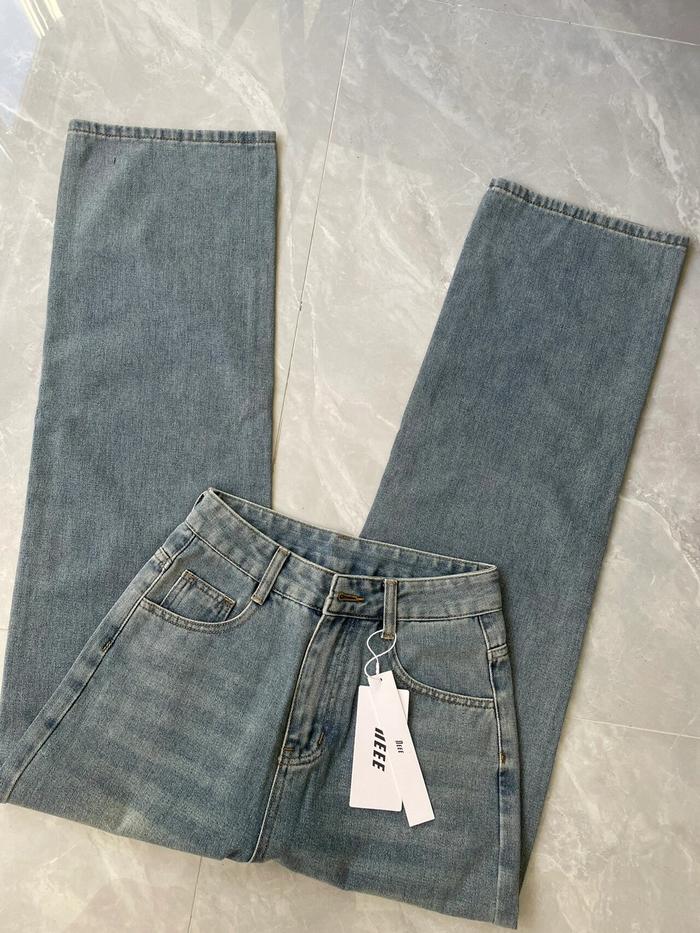 【LUCK WANITA】RETRO LURUS KOREA CELANA JEANS WANITA HIGHWAIST - BIRU, S