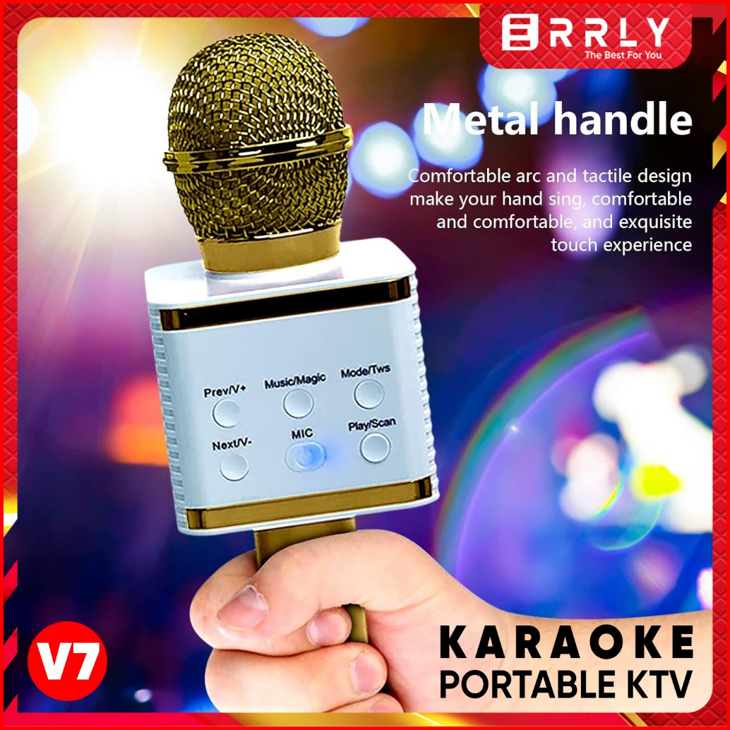 Mic Karaoke Errly V7 Microphone Bluetooth Karoke Portable Mikrofon Wireless Wster New Smule