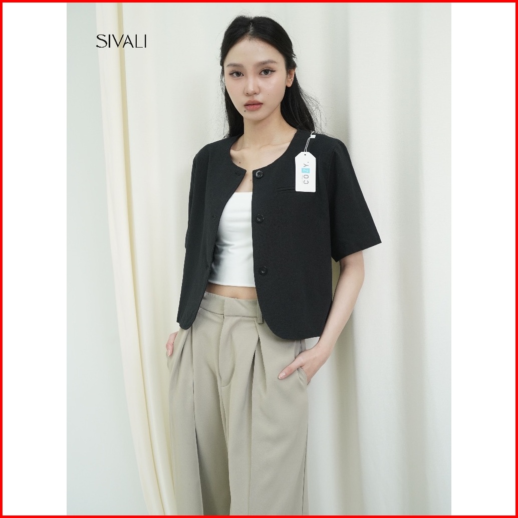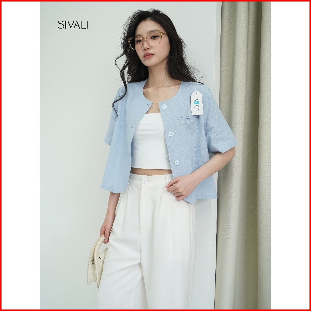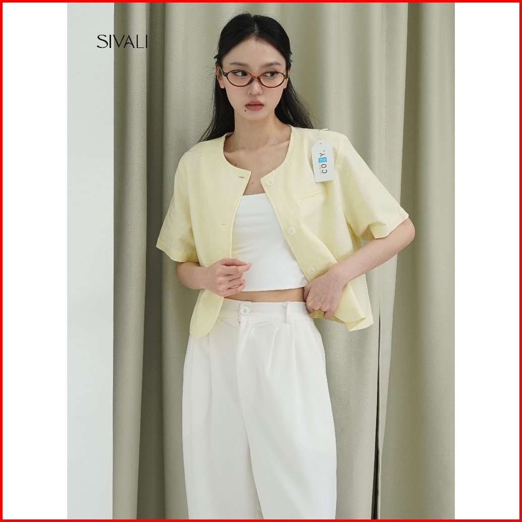 Sivali Summer Linen Top - Atasan Oversize Linen Wanita Casual Minimalis Chic - Outer Lengan Pendek Short Sleeve 1995