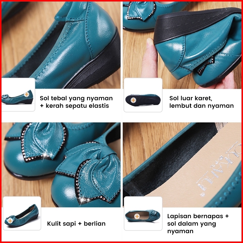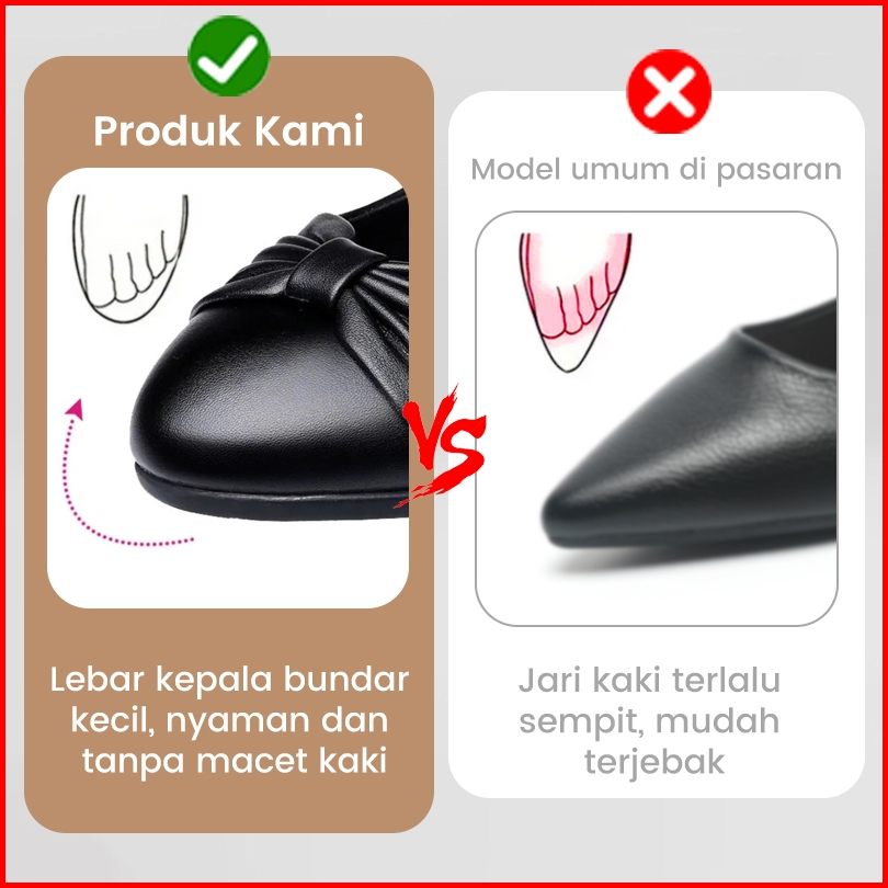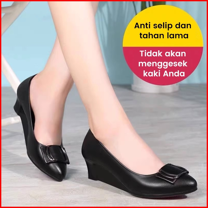 Sepatu Wedges Wanita Sepatu Kerja Flat Kasual Kulit Sapi Hitam Slip On Wanita Dewasa