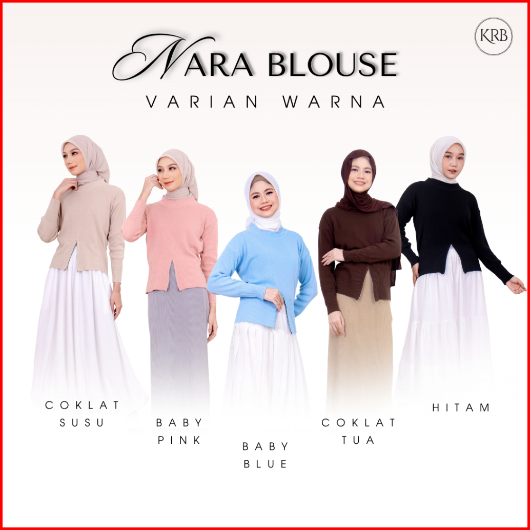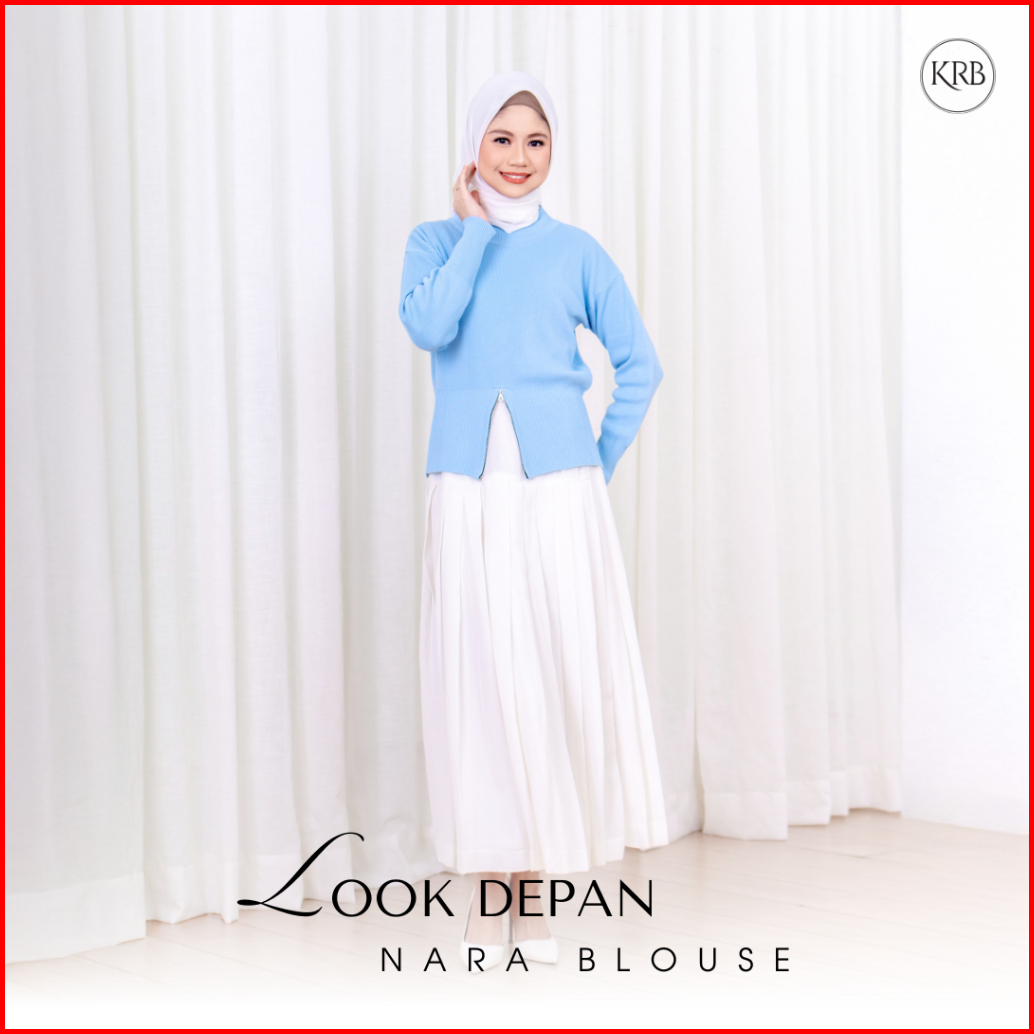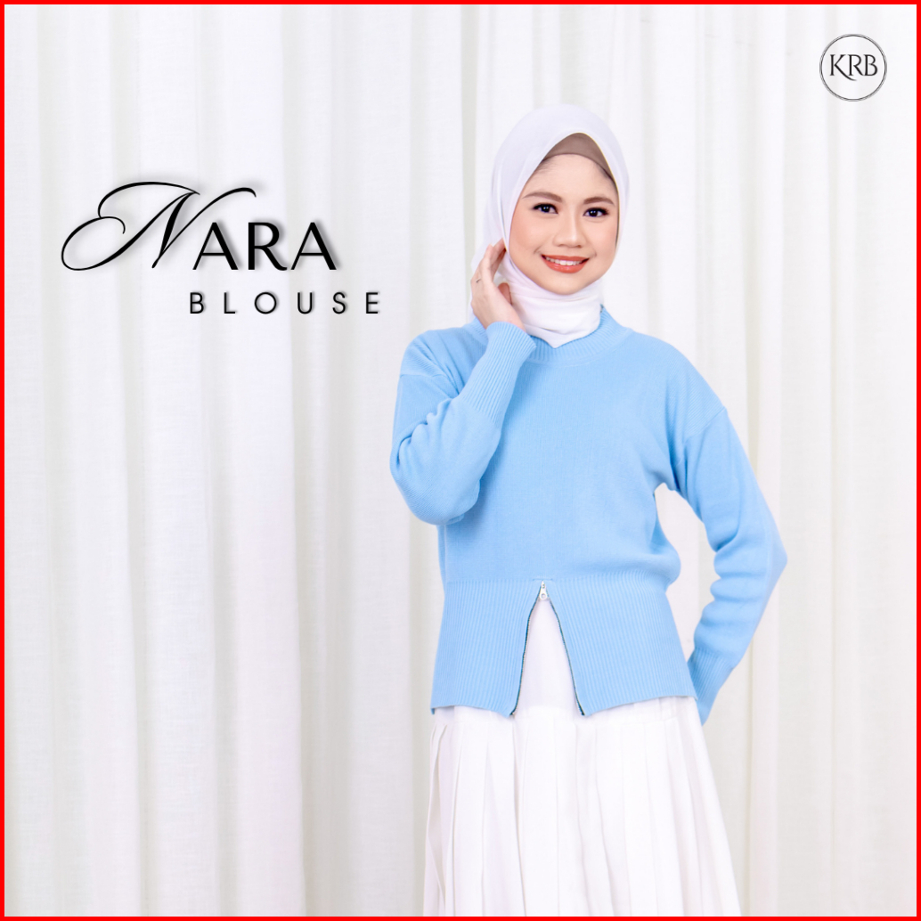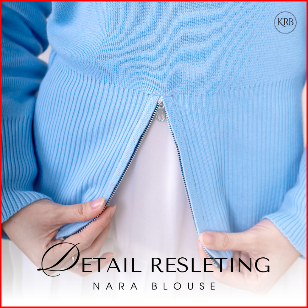 Blouse Nara Zipper Atasan Wanita Rajut Polos Lengan Panjang Knit Top Sleting Bawah Krb