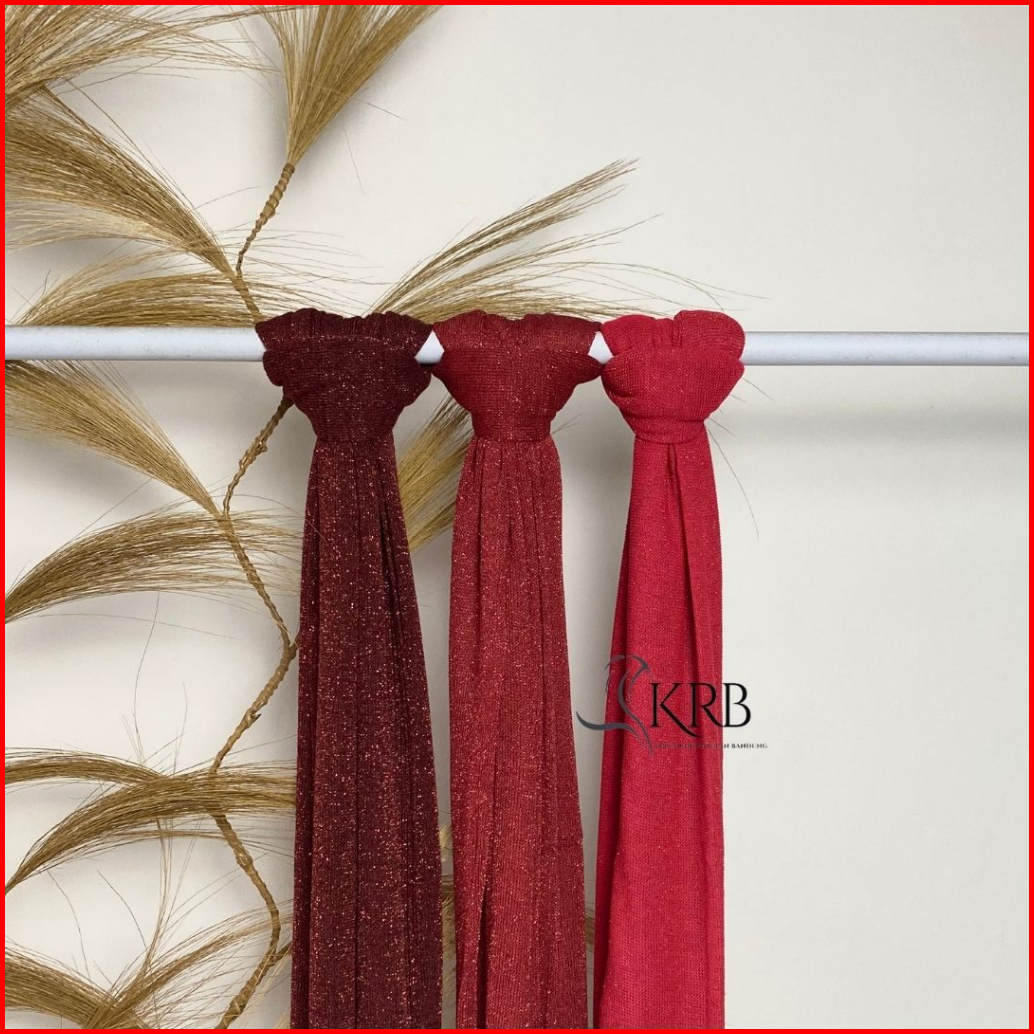 Krb Pashmina Gliter Rajut Merah - Merah Cabai - Maroon - Premium - Kerudung Nikahan Wanita Motif Terbaru - Jilbab Jersey
