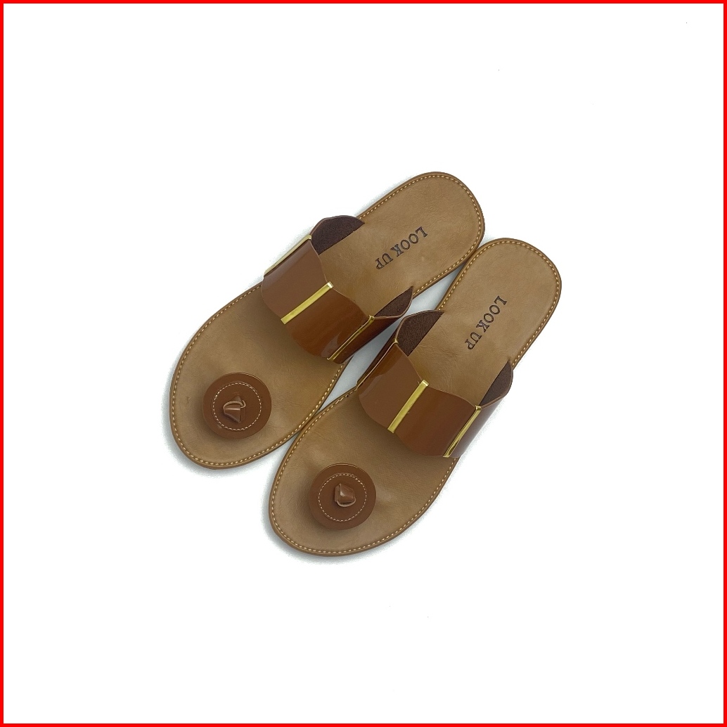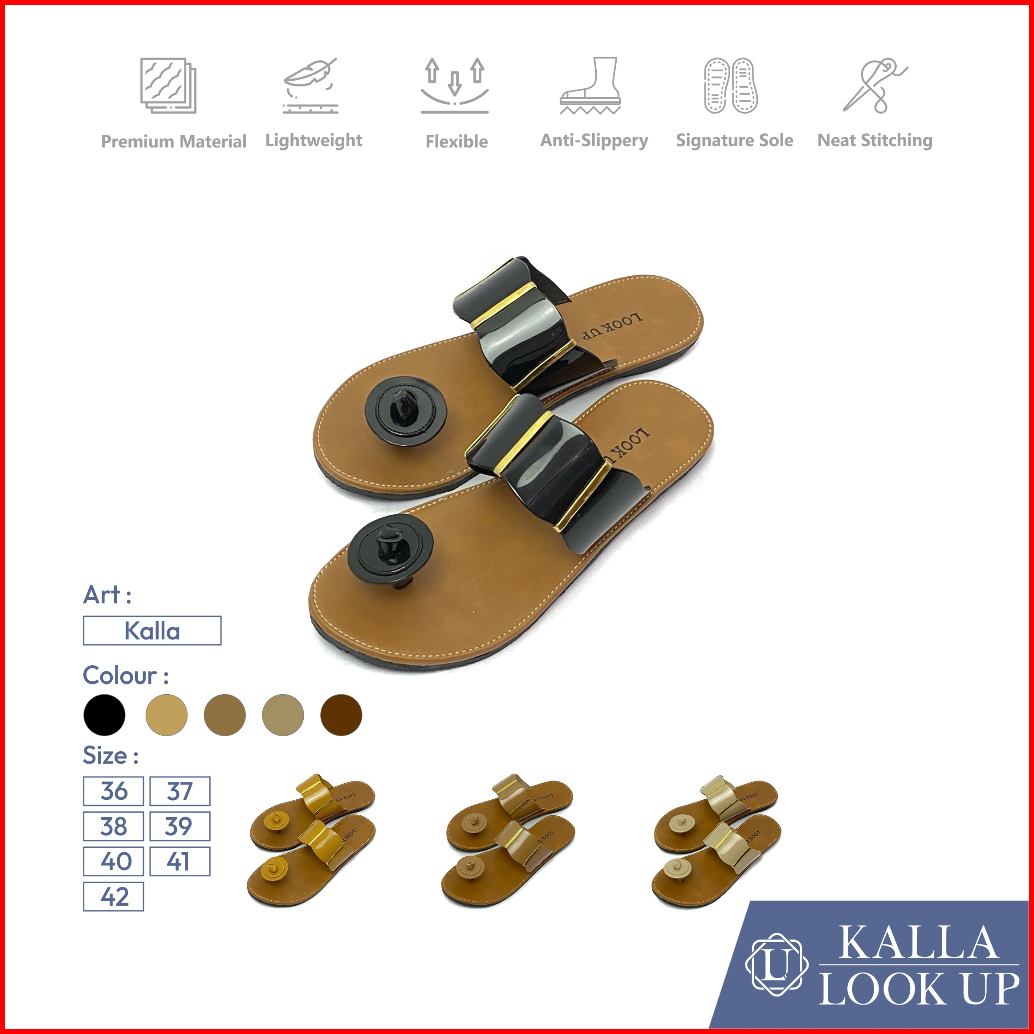 Kalla Lookupshoes Sandal Jepit Glossy Wanita Model Kancing Jamur Korean Style Empuk Kulit Sintetis Sol Karet Anti Licin