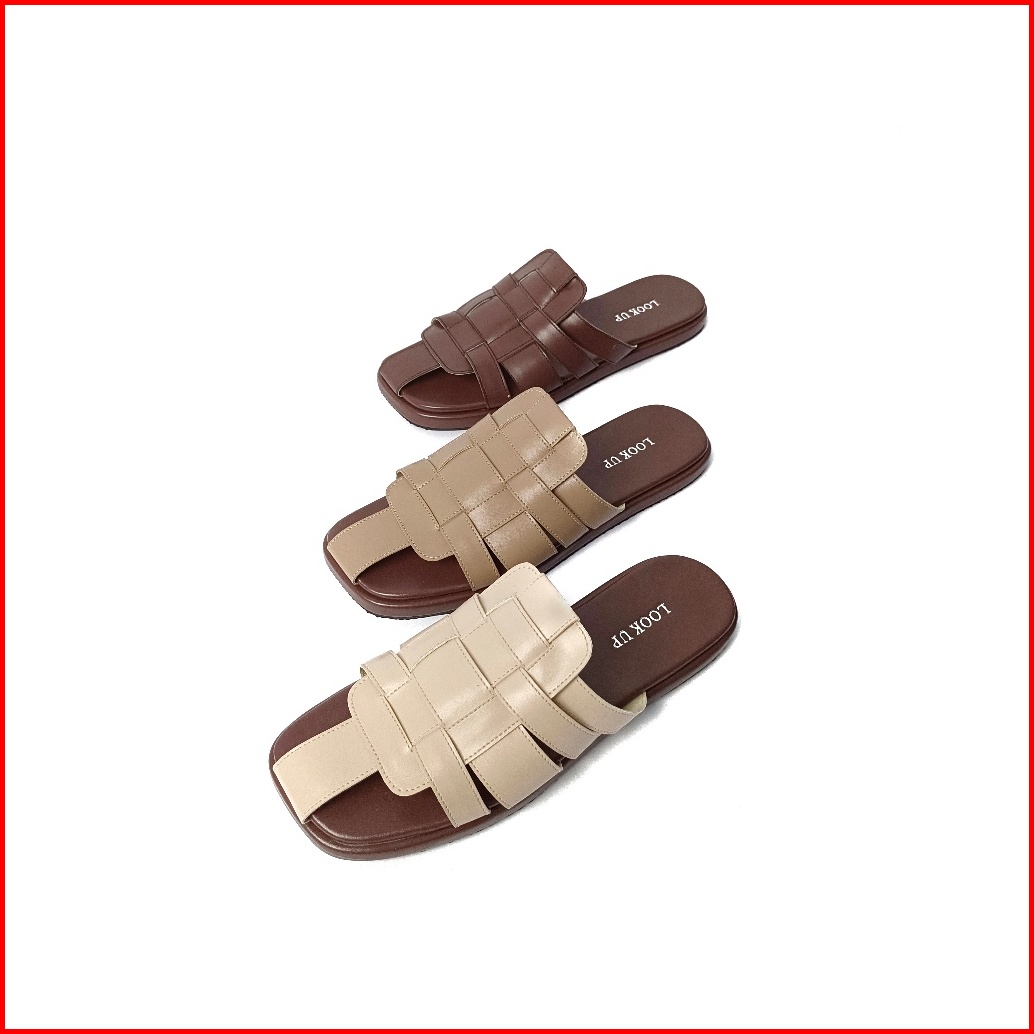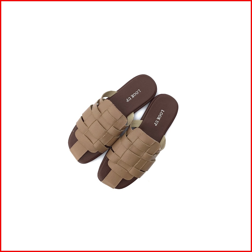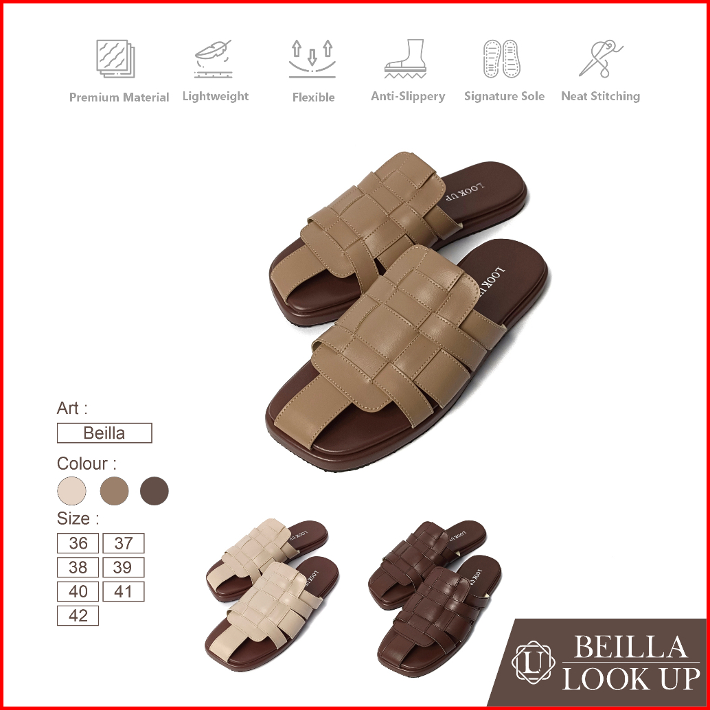Biella Lookupshoes Sandal Wanita Slop Anyam Ketupat Empuk Sendal Flat Teplek Anti Slip Sol Karet