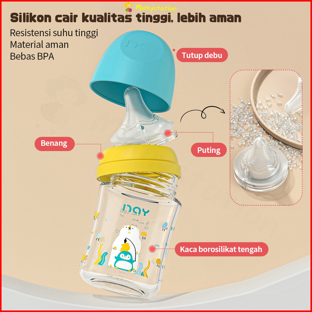 Mumystation Botol Susu Kaca Bayi Anti Bocor 160ml 240ml Botol Wide Neck Newborn