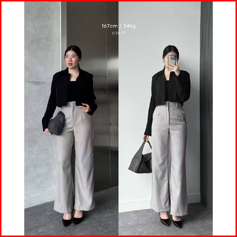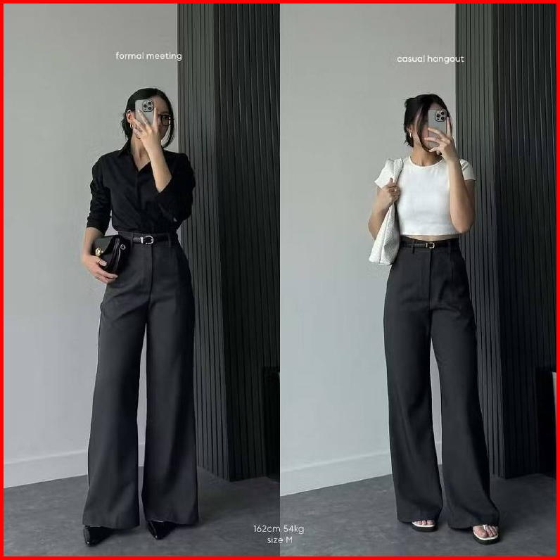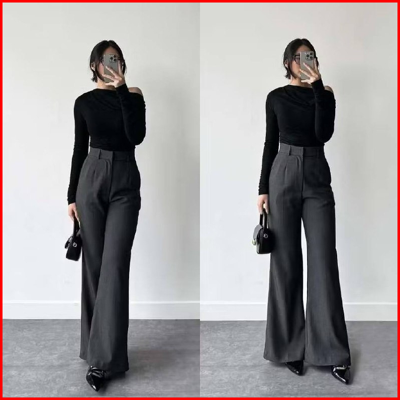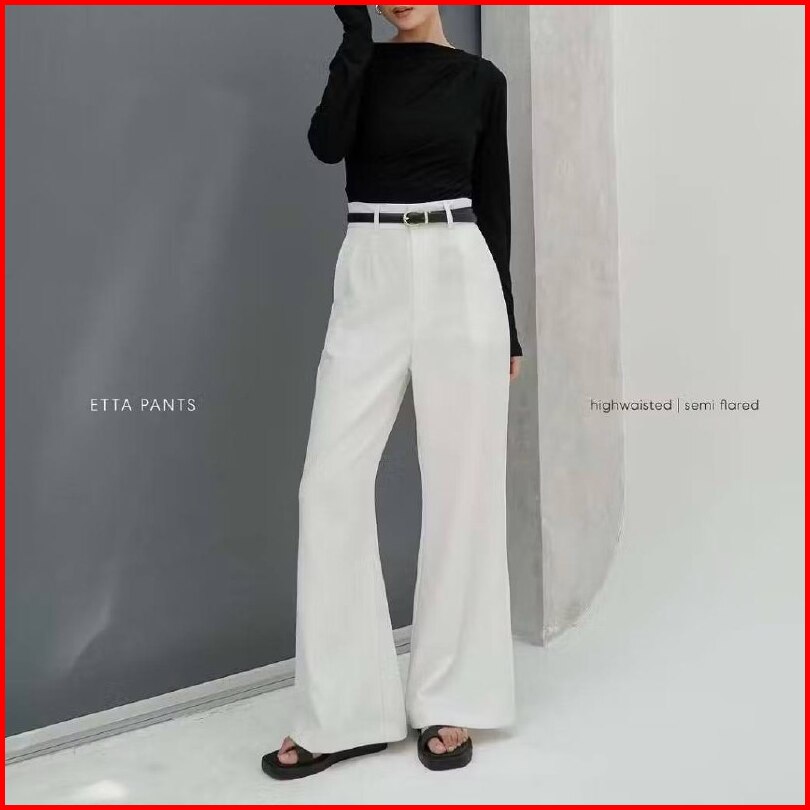 Etta Pants Highwaist Flare Pants Loose Cutbray Korean Style Celana Kantor Semi Wol Wanita Premium