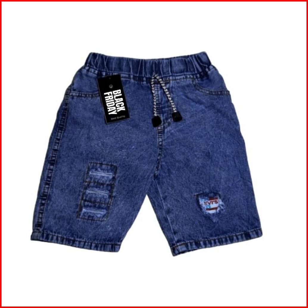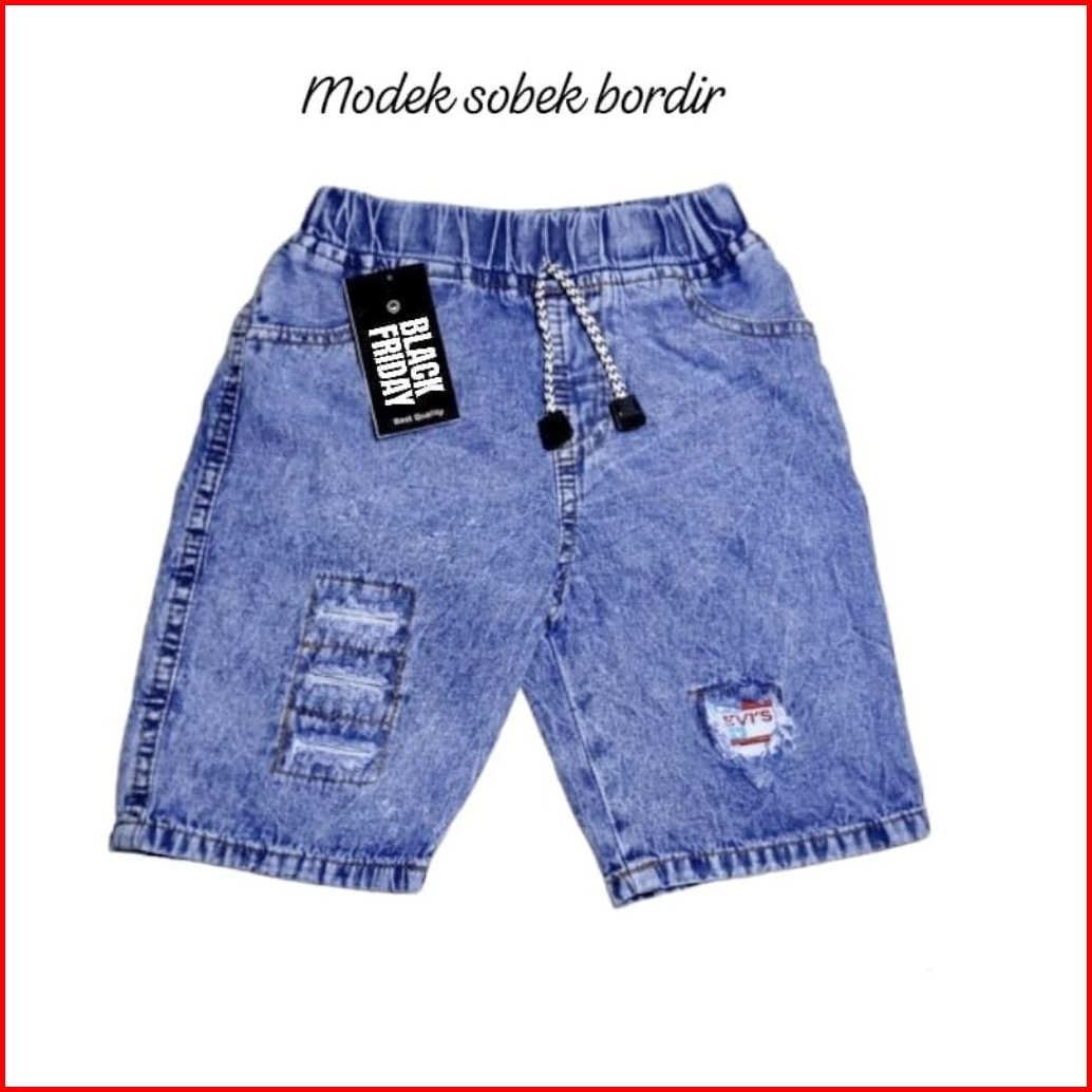 Celana Pendek Anak Laki- Laki Sobek Bordir Jeans Denim