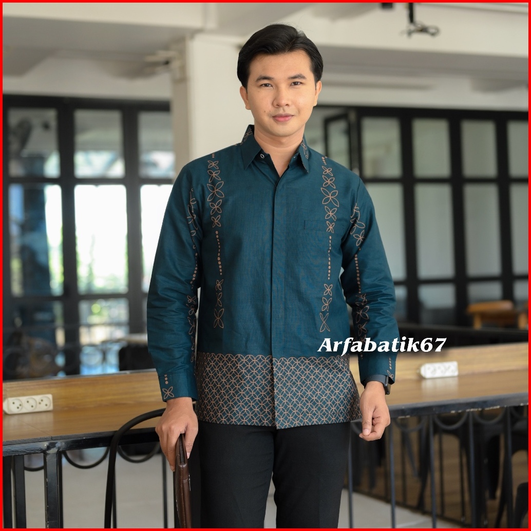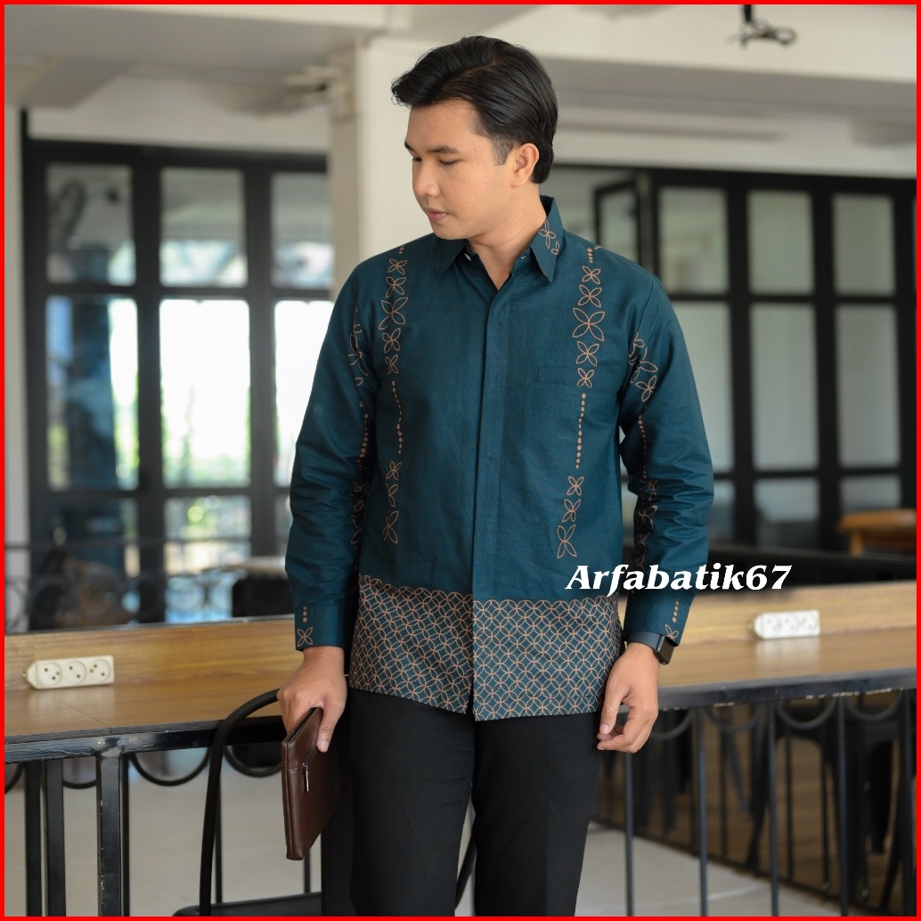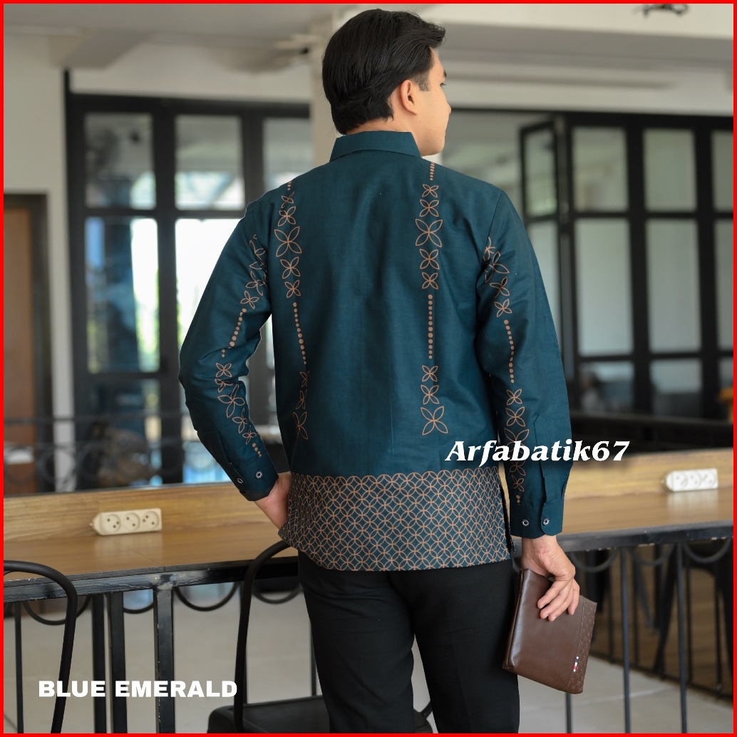 Kawung Blue Emerald Kemeja Batik Pria Lengan Panjang Dan Lengan Pendek Katun Pria Premium Lapis Furing Hero Ready Seraga