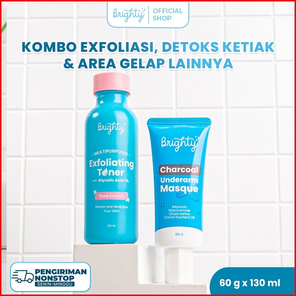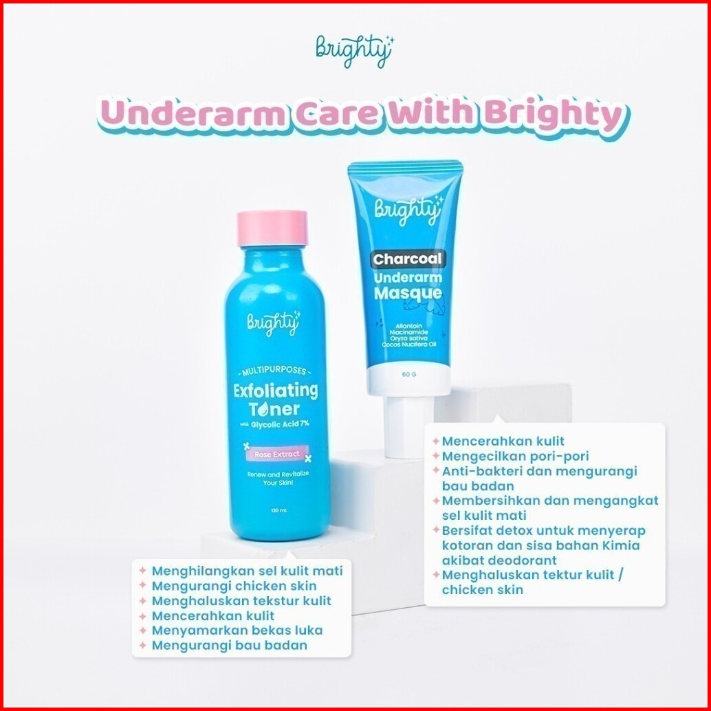 Brighty Charcoal Underarm Masque X Multipurpose Exfoliating Toner Paket Pencerah Ketiak Cream Ampuh Memutihkan Kulit Ski