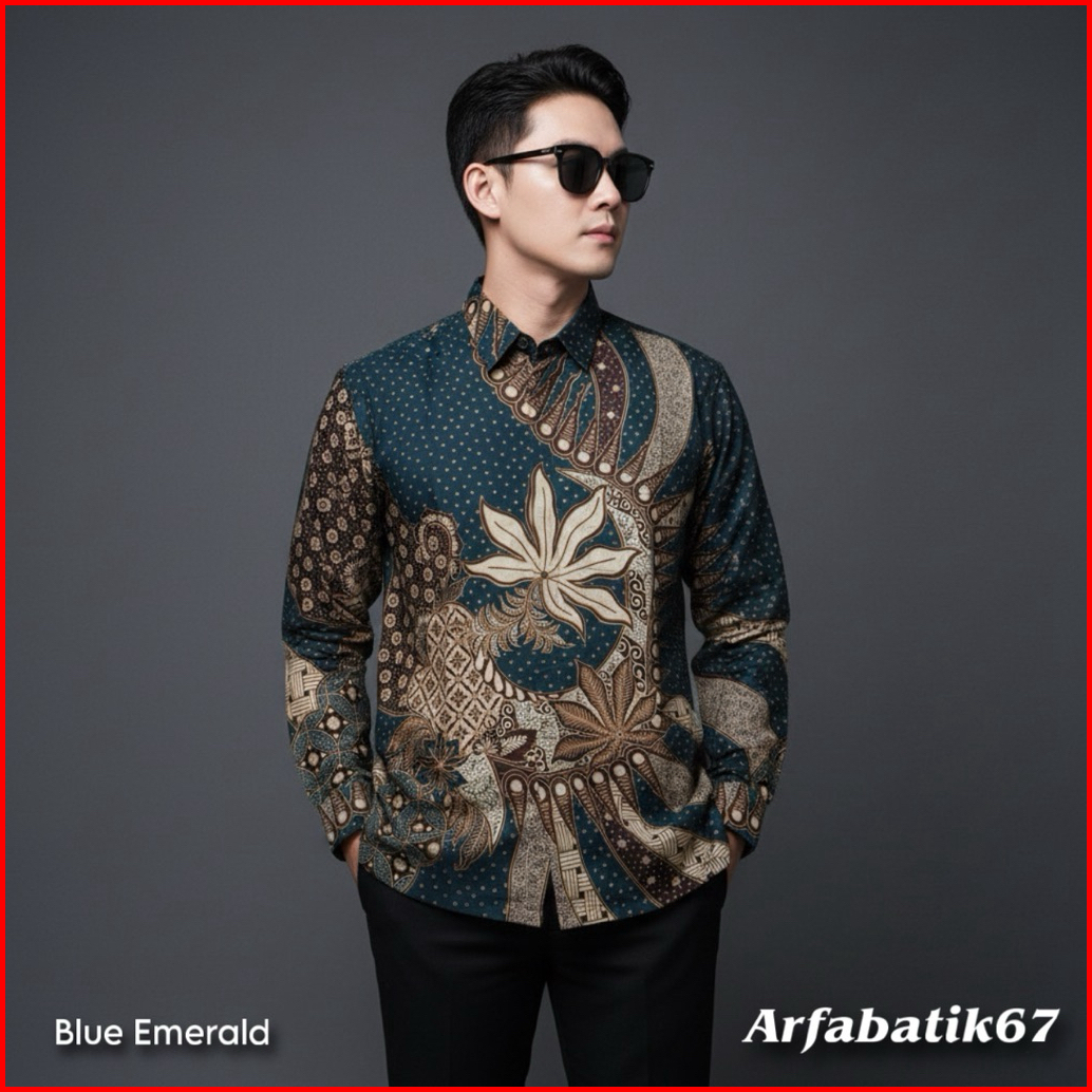 Singkong Blue Emerald Kemeja Batik Pria Lengan Panjang Dan Lengan Pendek Katun Pria Premium Lapis Furing Hero Ready Sera