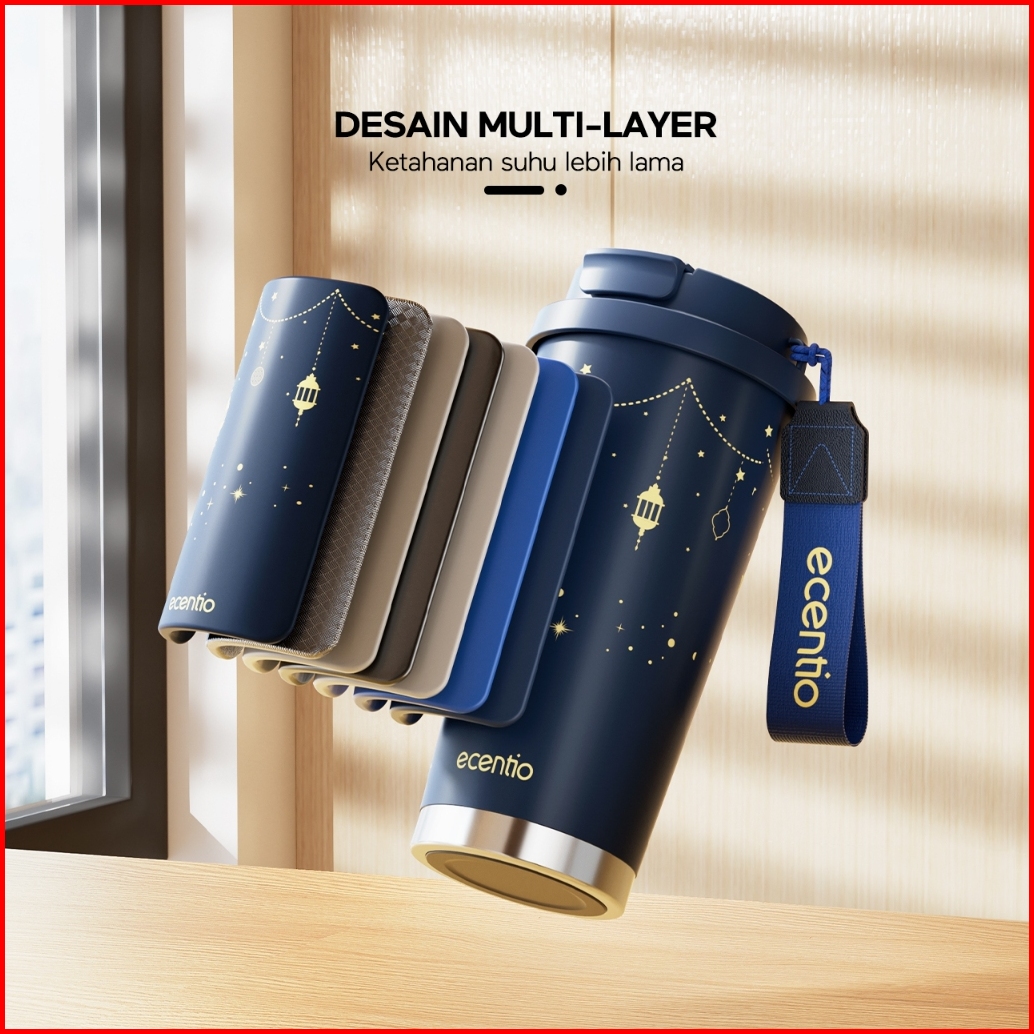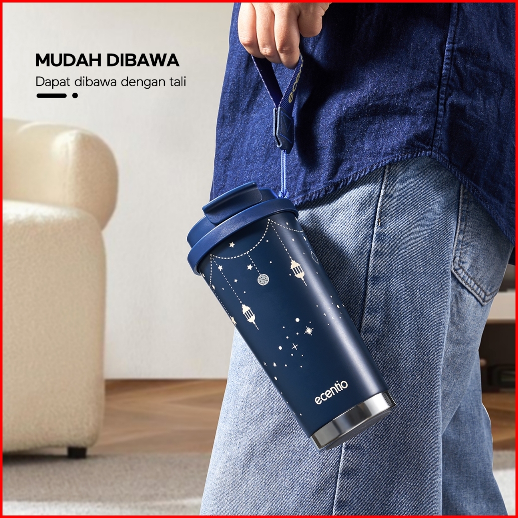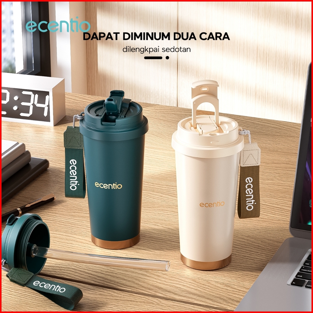 Ecentio Tumbler Minum Premium 530ml Tahan Dingin 24 Jam Botol Stainless 316 Portable Ramadan Hadiah Idul Fitri Kopi Gela