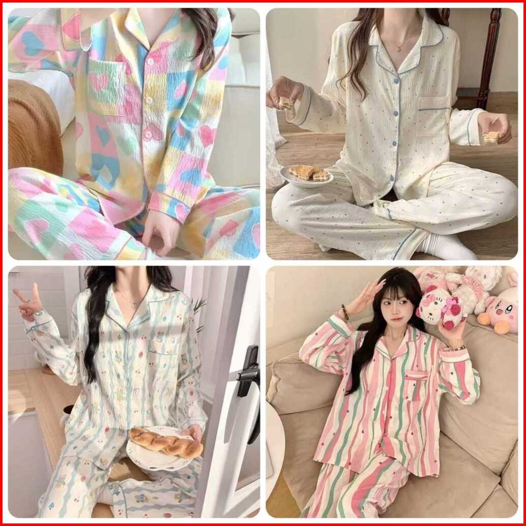 Lovera Piyama Baju Tidur Set Newkdpp Wanita Dewasa Korean Style Bahan Premium