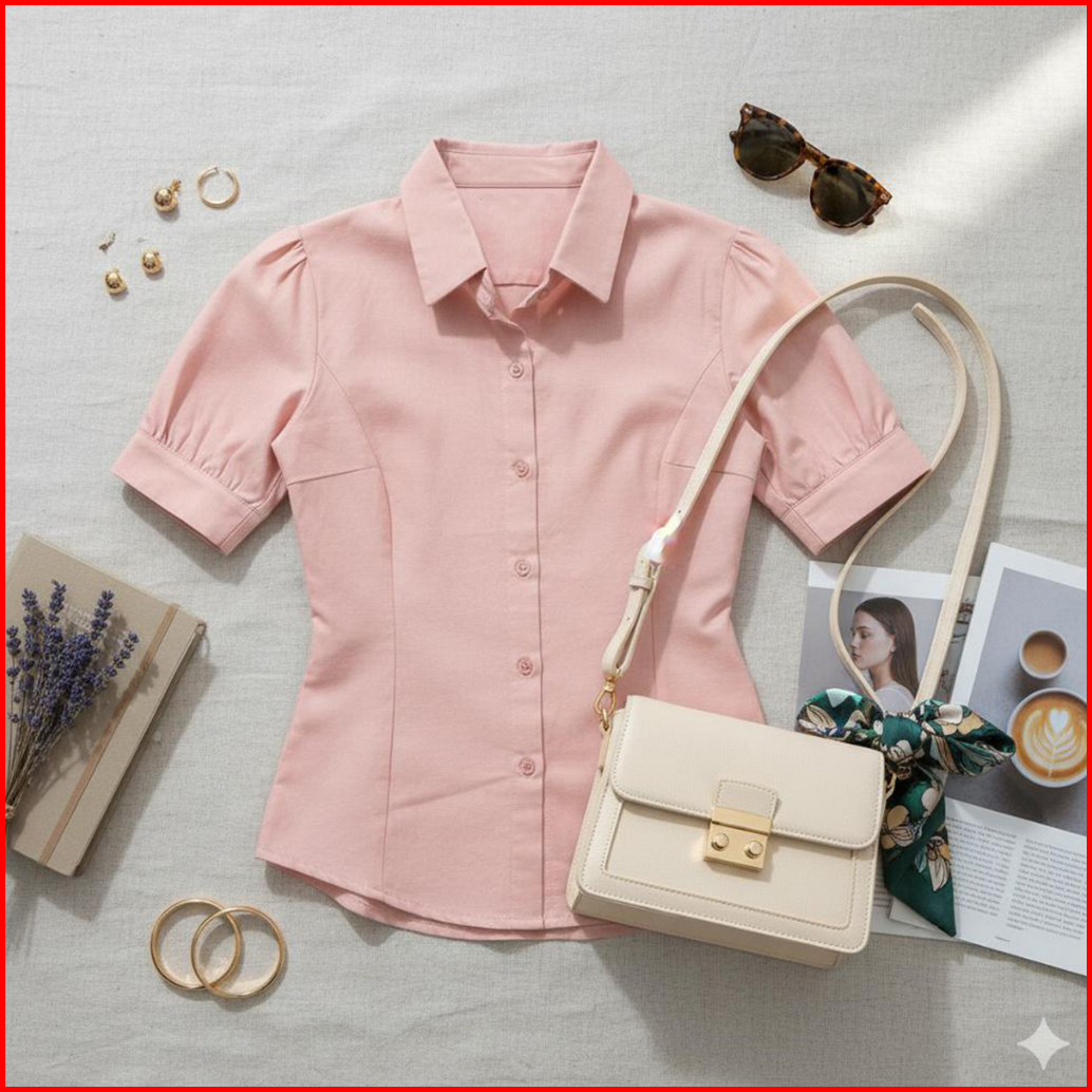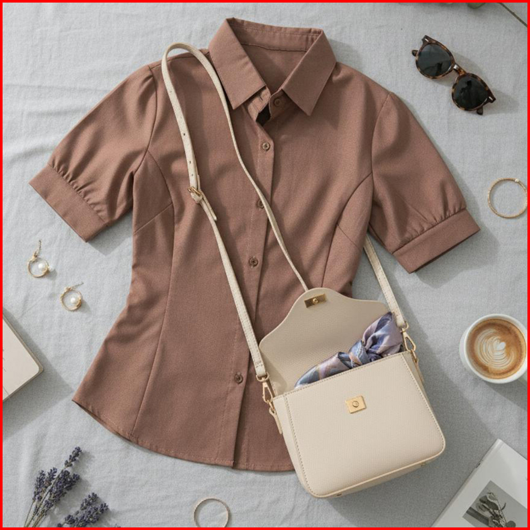 Morin Shirt Kemeja Wanita Slim Fit Lengan Pendek Kemeja Kerja Wanita Casual Formal Modis Nyaman