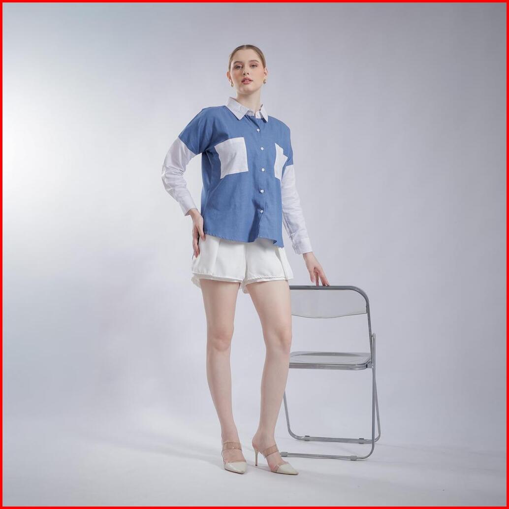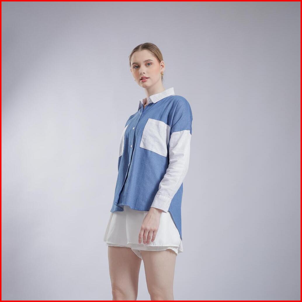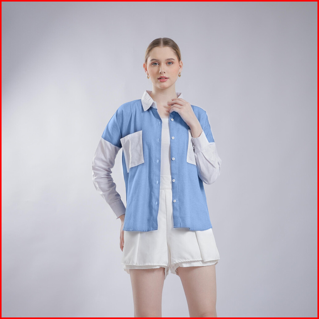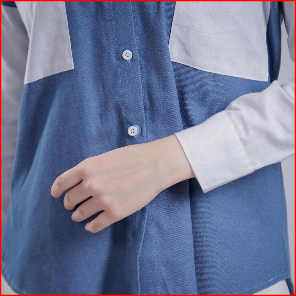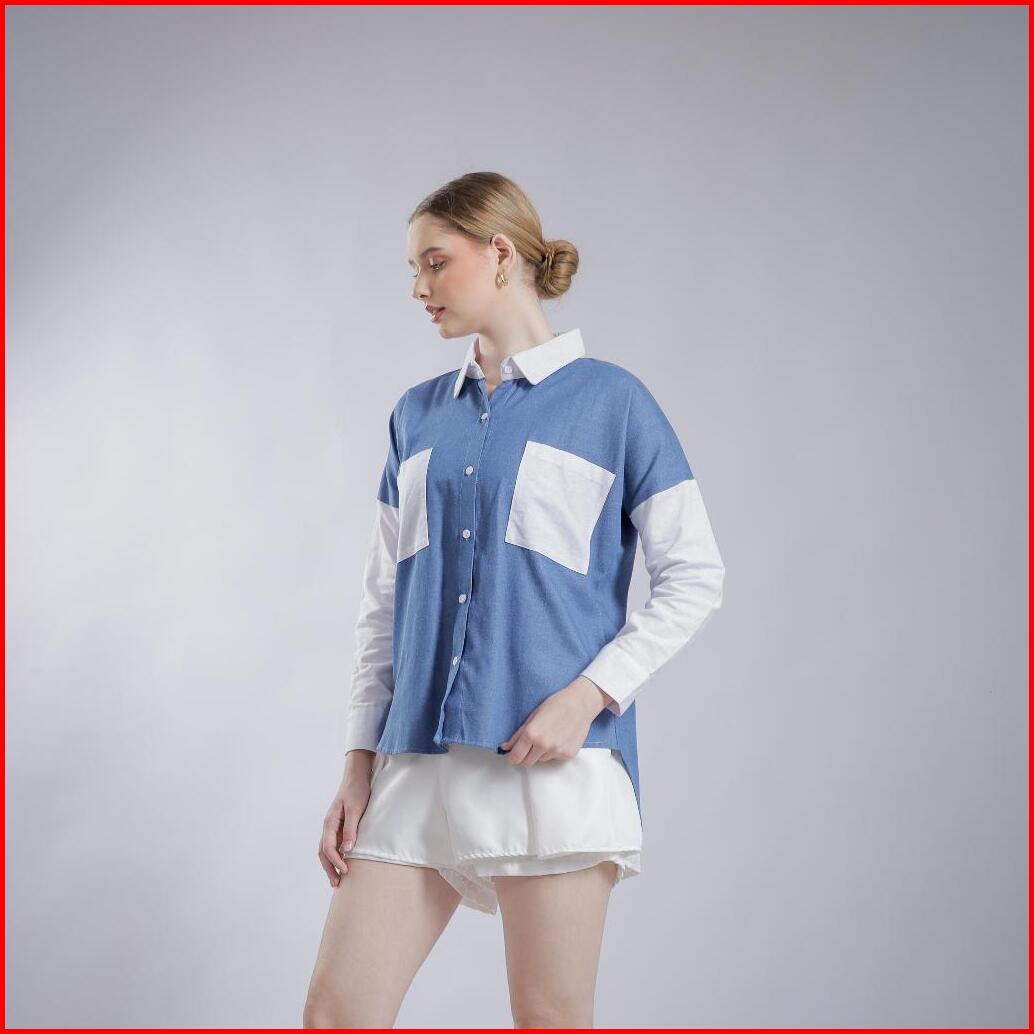 Luna Atasan Oversize Kemeja Wanita Lengan Panjang Model Two Tone Korean Style Modis Kekinian
