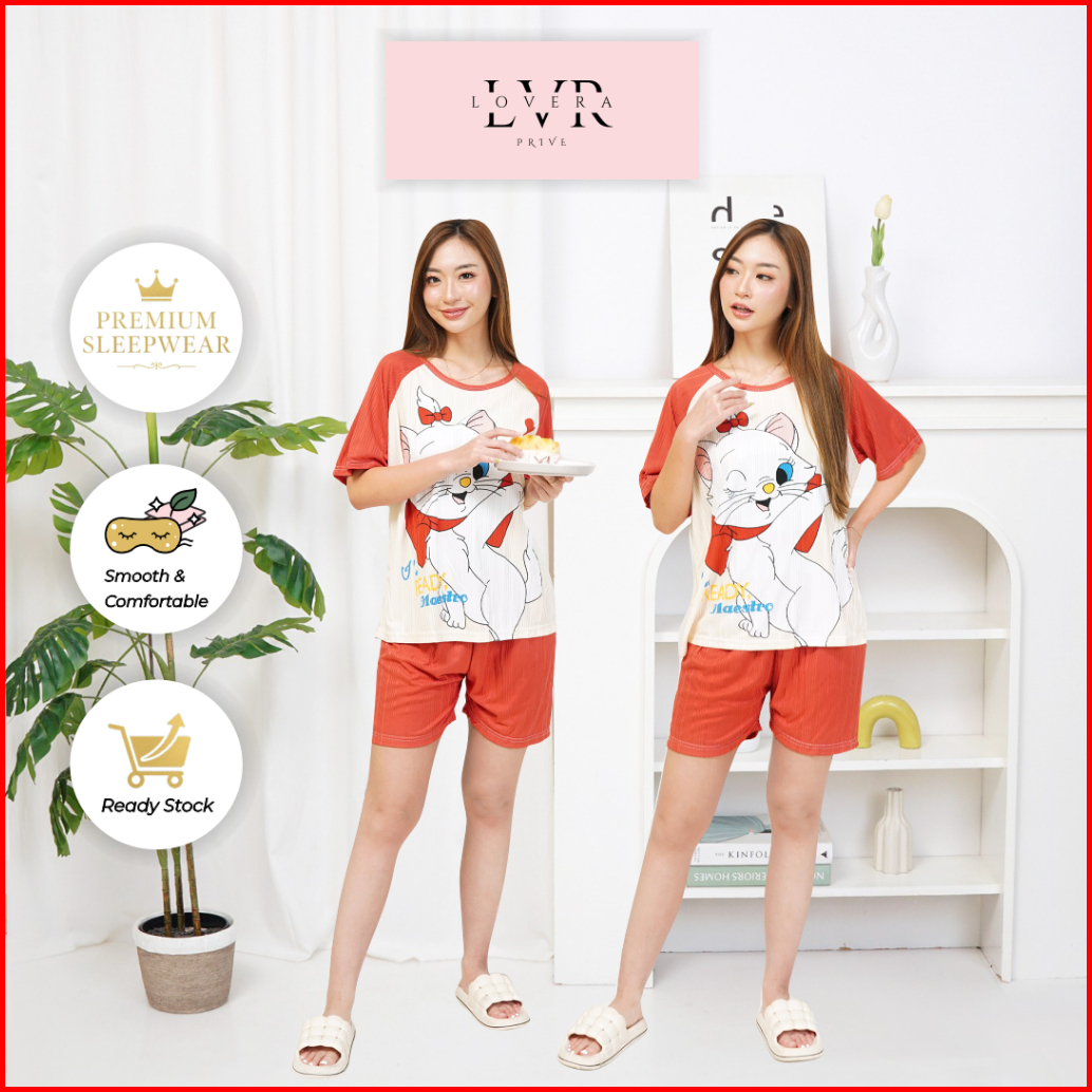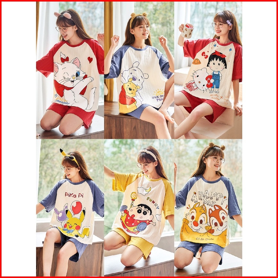 Lovera Piyama Wanita Dewasa Lengan Pendek Celana Pendek Berbagai Motif Kartun Lucu High Quality Sleepwear Qx310