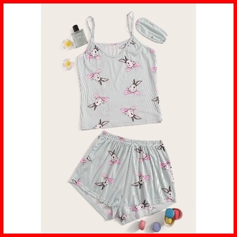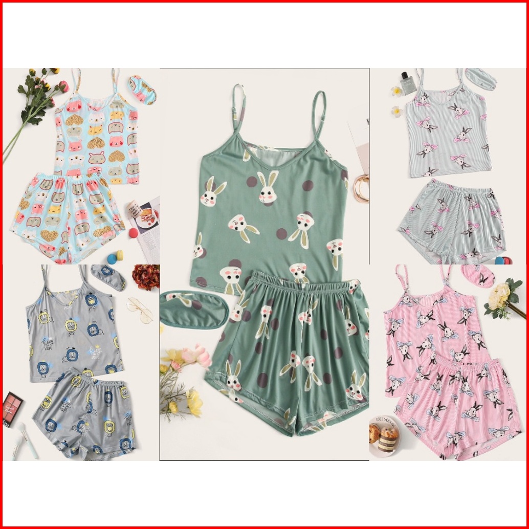 Lovera Piyama Baju Tidur Set Hp Lengan Tali Celana Pendek Model Kaos Sexy Free Penutup Mata