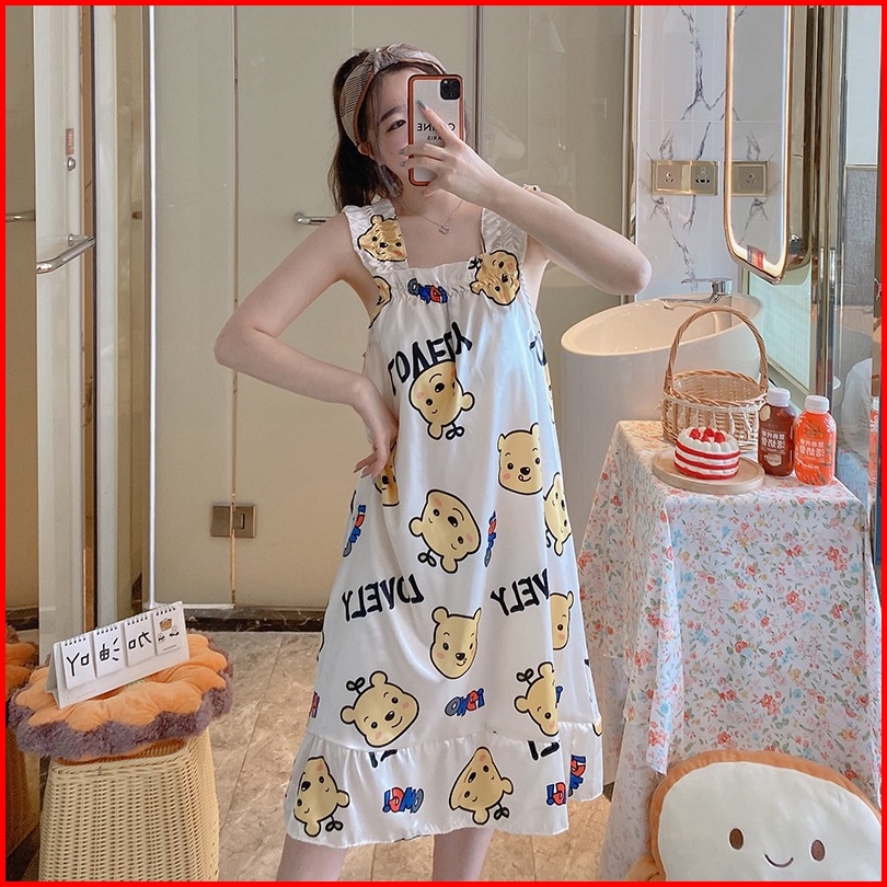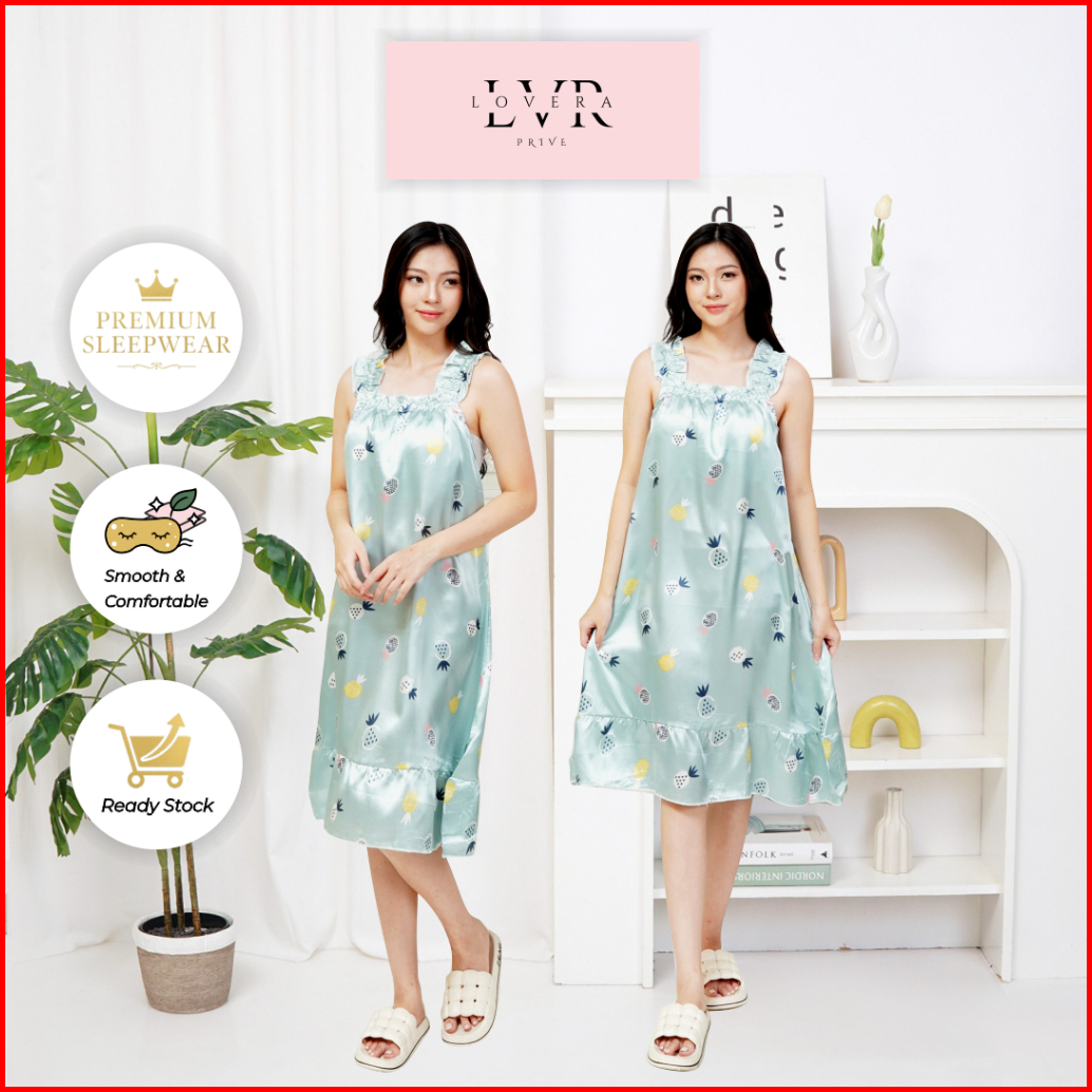 Lovera Daster Satin Model Tanktop Gaun Tidur Panjang Import High Quality