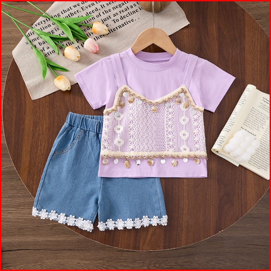 Kfcat Setelan Anak Perempuan 2025 Gaya Korea Katun Nyaman Celana Pendek Denim Untuk Usia 1-4 Tahun