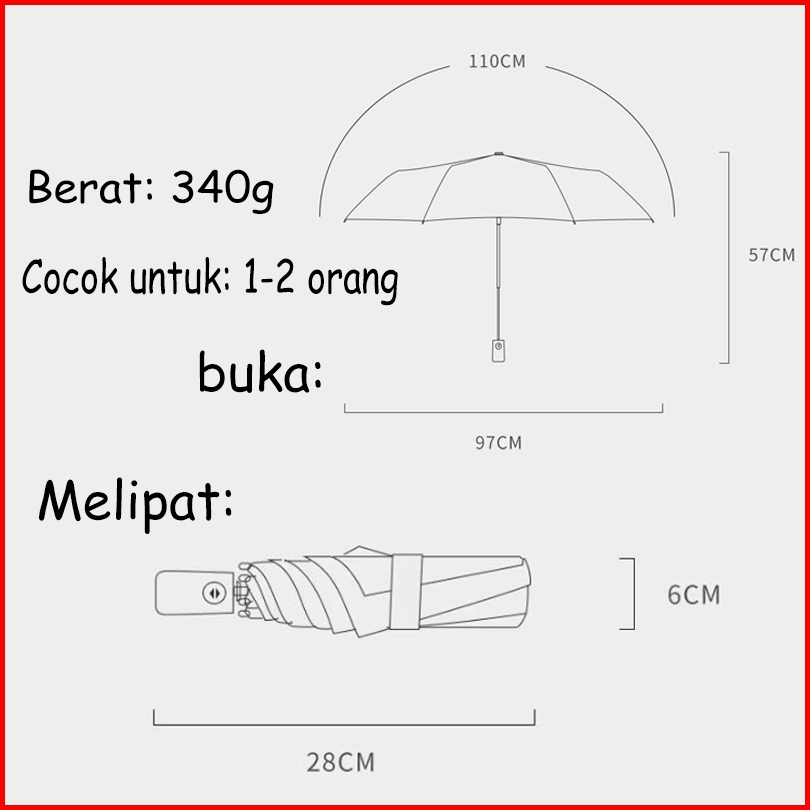 Holo Payung Lipat Otomatis Anti Uv Tebal Payung Anti Hujan Dua Penggunaan Umbrella Corak Puppy Lucu