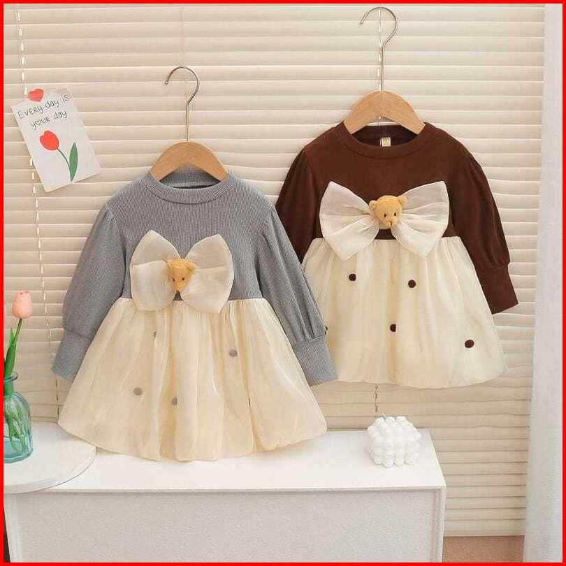 Kf Cat Dress Gaun Anak Perempuan Lengan Panjang Bahan Katun Premium Gaya Korea Usia 1-4 Tahun