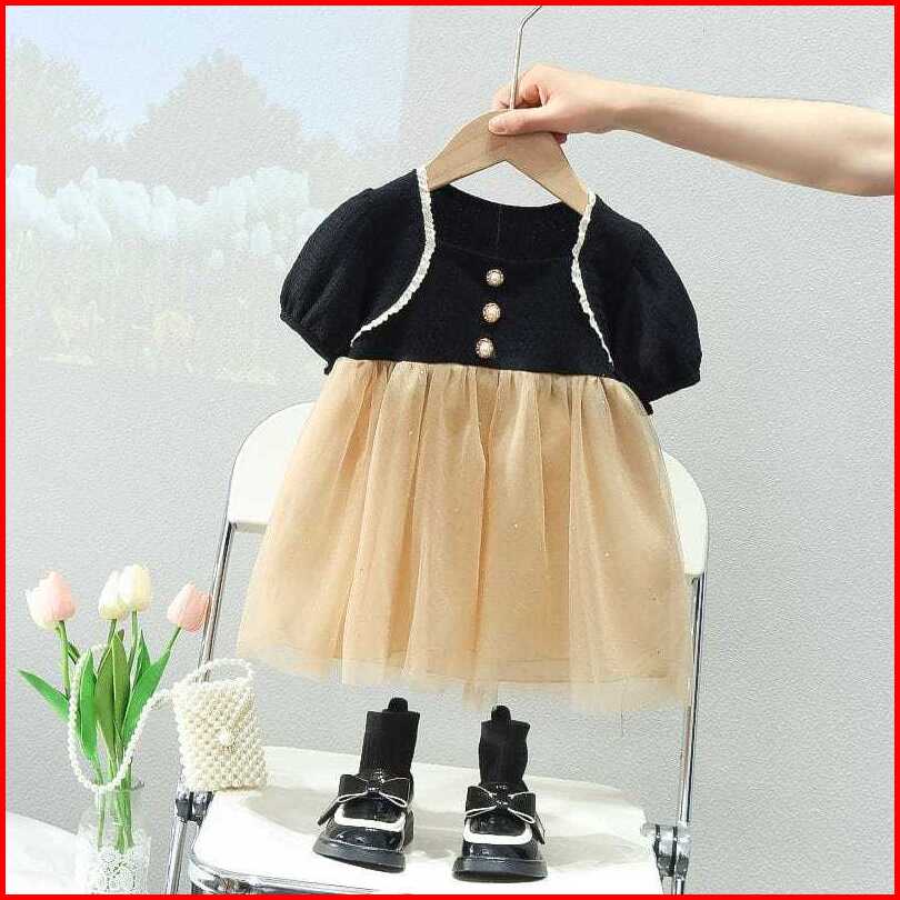 Kf Cat Dress Anak Perempuan Lengan Pendek Bahan Crinkle Tile Korean Style Usia 6 Bulan - 3 Tahun