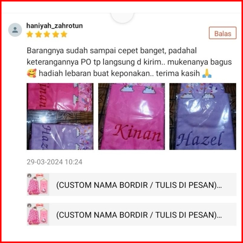 Custom Nama Bordir Tulis Di Pesan Set Mukenah Anak Sajadah 1 2 3 4 5 6 7 8 Tahun