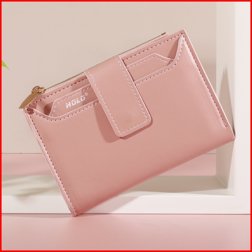 Holo Dompet Lipat Wanita Kecil Elegan Dompet Kartu Kulit Uang Kapasitas Besar Dengan Berbilang Warna