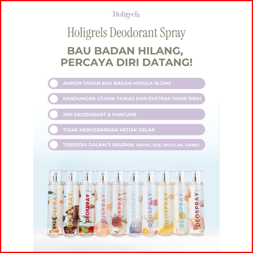 Holigrels Deospray 60ml Deodorant Spray Tawas Cair Anti Bau Badan Keringat Bpom Deo Powdery Parfum Tahan Lama Nadia Omar
