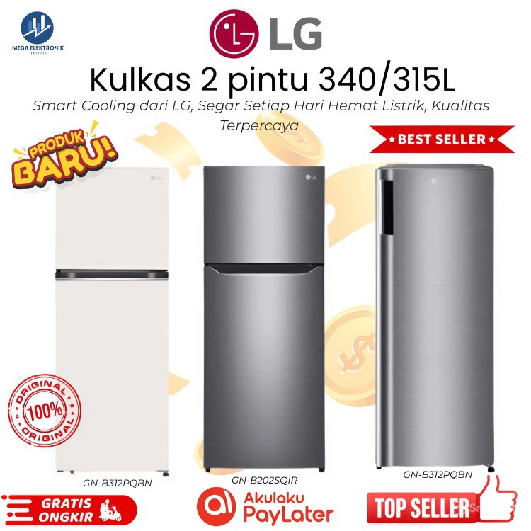 LG Kulkas 2 Pintu 202L / 187L - Smart Diagnosis - Smart Inverter Compressor - Humidity Controller Essence Matte Black